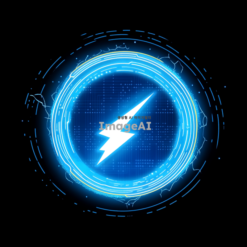 전기 스파크가 튀는 역동적인 로고 디자인, 푸른 전류가 흐르는 듯한 느낌, 현대적이고 미래지향적인 스타일, 검은 배경 위에 빛나는 효과, 기술적이고 혁신적인 분위기, 전자회로 패턴이 섬세하게 포함된 디자인.