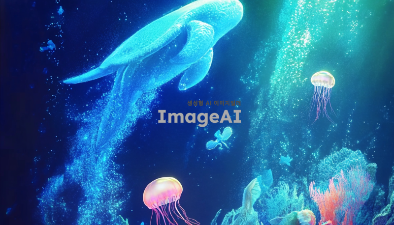 다양한 해양 생물들이 우아하게 헤엄치는 아름다운 수중 애니메이션. 밝고 다채로운 산호초와 물고기, 해파리, 바다거북이 자연스럽게 움직이는 장면. 생물들은 부드럽고 유연한 움직임을 가지며, 위에서 부드러운 파란색과 청록색 빛이 내려와 평화롭고 신비로운 수중 분위기를 조성.