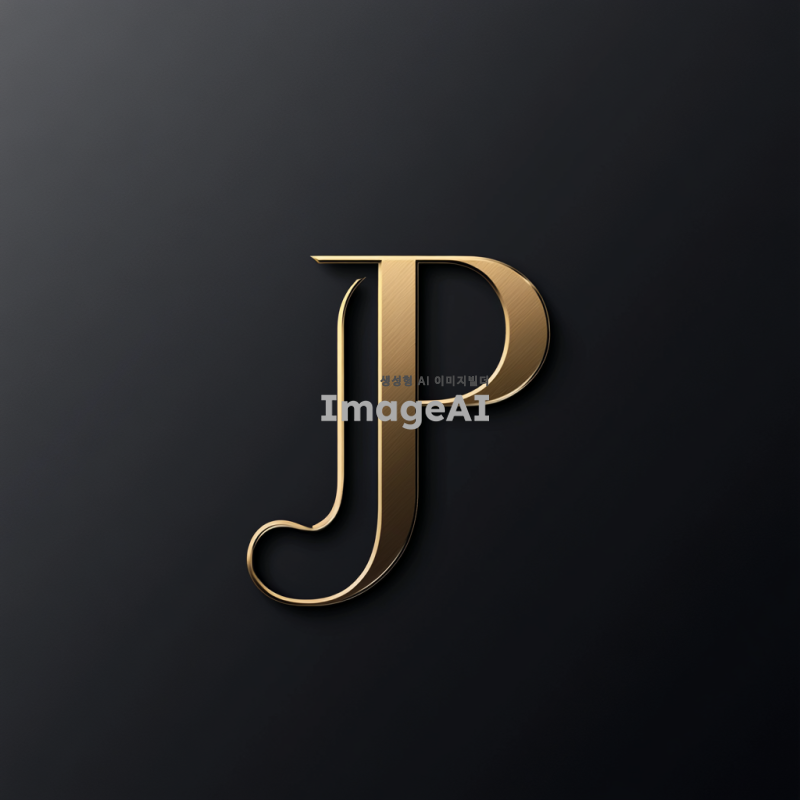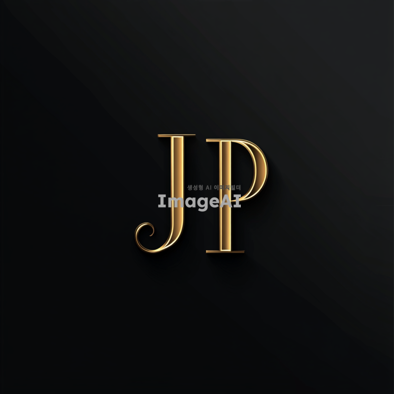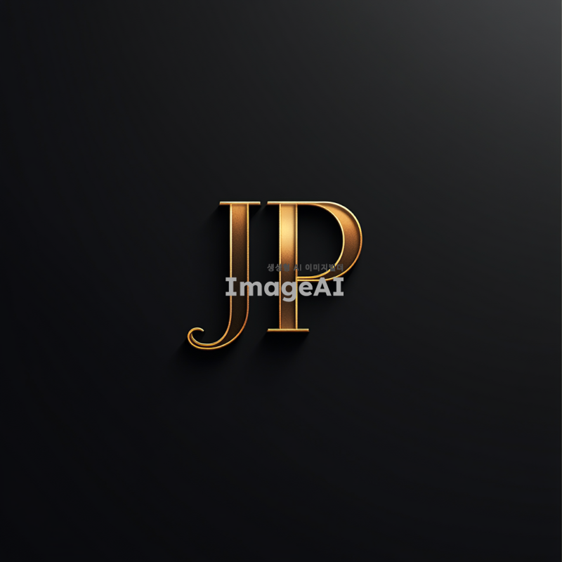검은색과 금색을 조화롭게 사용한 세련된 JP 로고 디자인, 현대적이고 미니멀한 스타일, 고급스러운 서체, 은은한 광택 효과, 고급 브랜드 느낌을 주는 심플한 배경.
