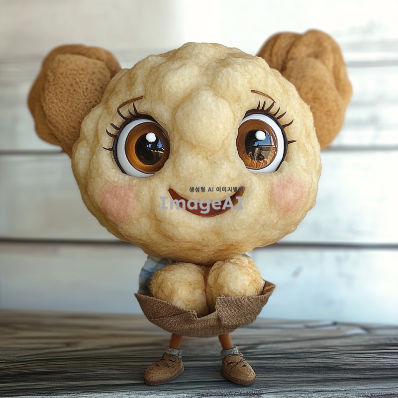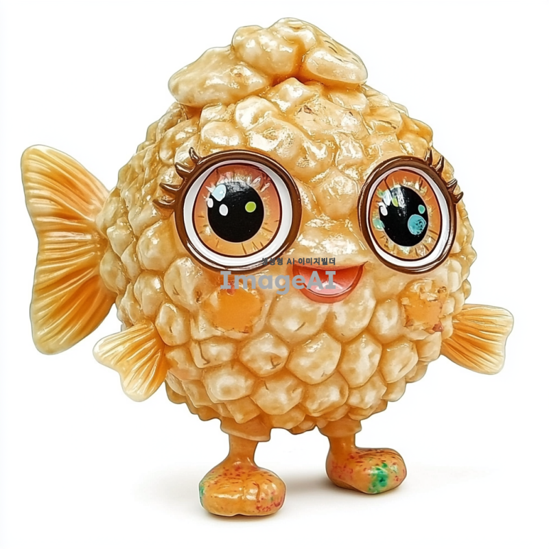귀여운 어묵 캐릭터, 큰 눈과 웃는 얼굴, 밝은 색상의 귀여운 표정, 작은 손과 발, 재미있는 포즈, 만화 스타일, 따뜻하고 친근한 분위기, 어린이들에게 친숙한 모습, 일본식 어묵의 질감과 모양, 부드럽고 말랑말랑한 느낌, 아기자기한 배경.