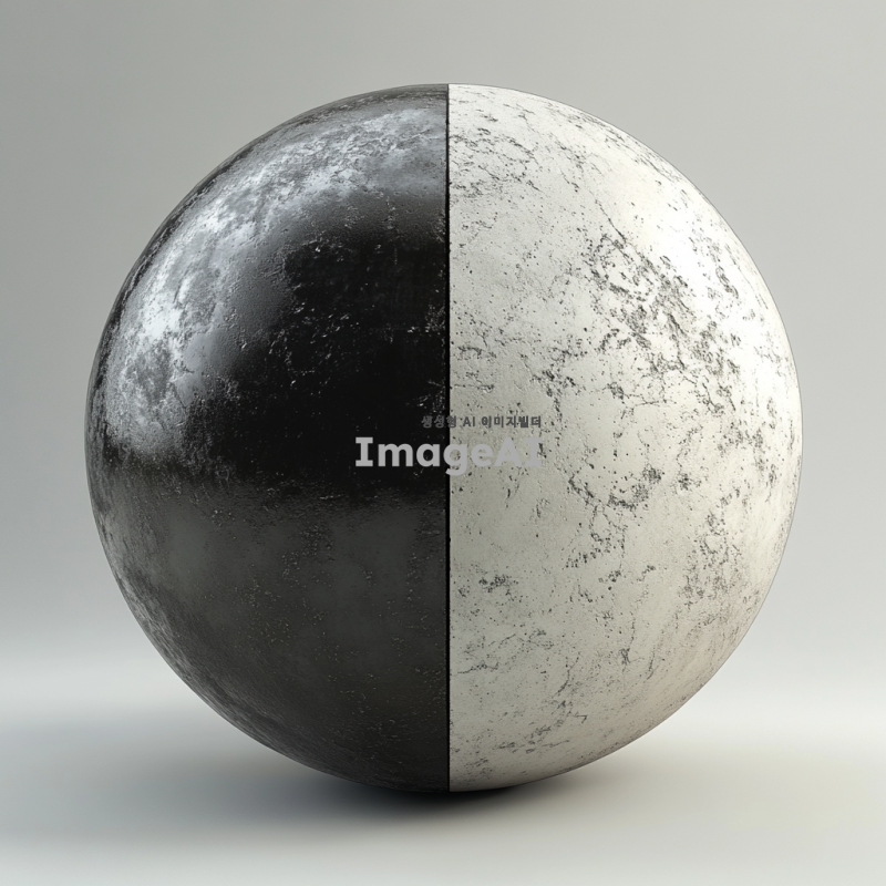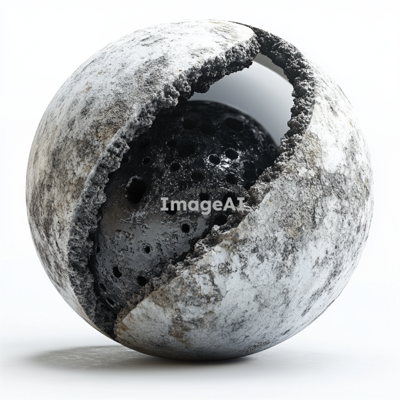 사실적인 코어쉘 구조, 내부 원은 검정색 철, 외부 쉘은 하얀색에 가까운 회색 실리카, 원 속에 원이 있는 형태.