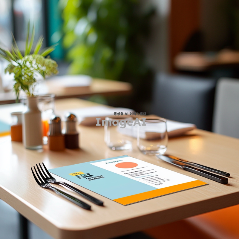 무료 쿠폰의 디자인을 강조한 이미지, 평일에만 사용 가능, 테이블당 1매 사용 제한, 혜택 중복 불가를 명확히 나타내는 깔끔하고 현대적인 스타일, 밝고 친근한 색상 조합, 쿠폰에 관련된 텍스트와 아이콘을 포함, 시각적으로 매력적이고 쉽게 이해할 수 있는 구성, 레스토랑이나 카페 분위기를 연상시키는 요소들 추가.