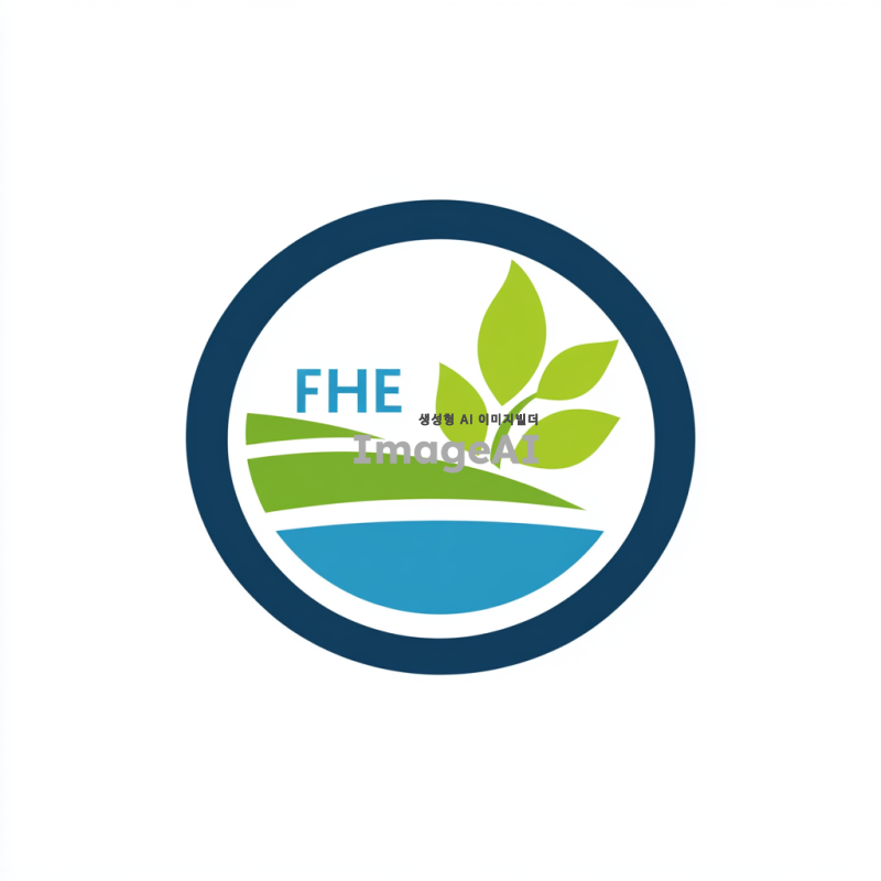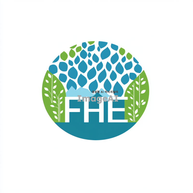 심플하고 현대적인 디자인의 FHE 로고, 푸른색과 녹색의 조화를 이루며 환경과 평화를 상징하는 요소 포함, 둥글고 부드러운 선을 사용하여 친근하고 포용적인 느낌을 주는 스타일, 세련되면서도 눈에 띄는 디자인, NGO 단체의 신뢰성을 강조하는 요소 포함, 로고에 자연을 연상시키는 작은 아이콘이나 패턴 추가.