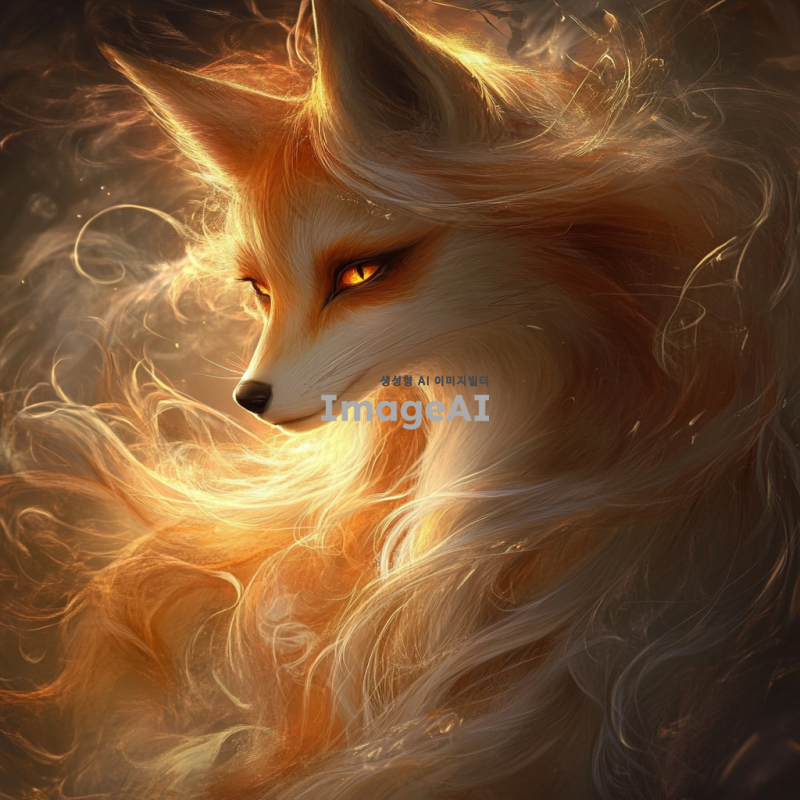 환상적으로 아름다운 얼굴의 구미호가 정면을 응시하고 있다. 그녀의 눈빛은 이성을 앗아갈 정도로 몽롱하고 매혹적이다. 긴 머리카락이 바람에 흩날리며, 주변에는 은은한 빛이 감돌고 있다. 신비로운 분위기를 자아내는 배경이 그녀의 매력을 더욱 돋보이게 한다.