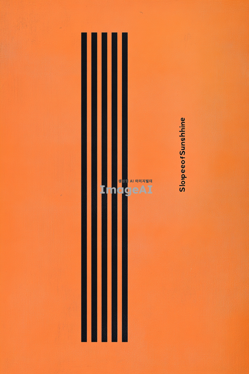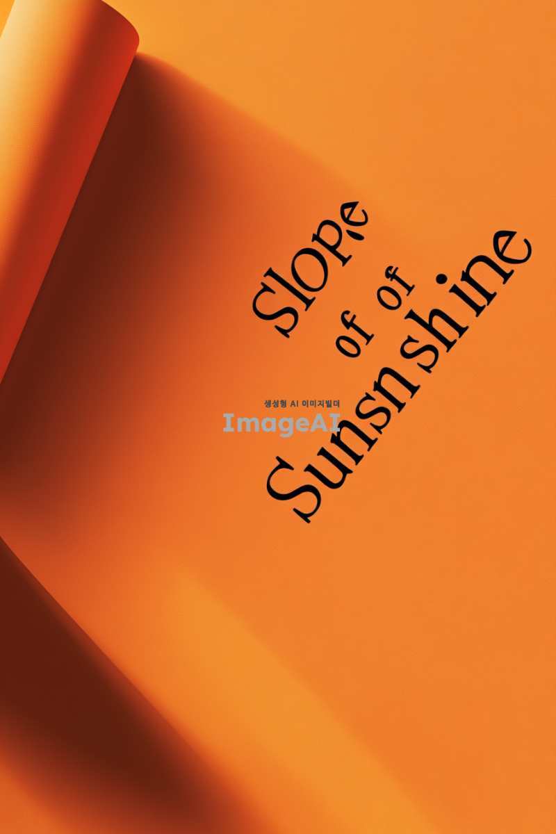 주황색 배경에 검정색 글씨로, 오른쪽에 세로로 "햇살의 기울기"라고 쓰여진 이미지, 깔끔하고 현대적인 디자인, 텍스트는 명확하고 읽기 쉽게 배치, 배경과 글씨의 색상 대비 강조.