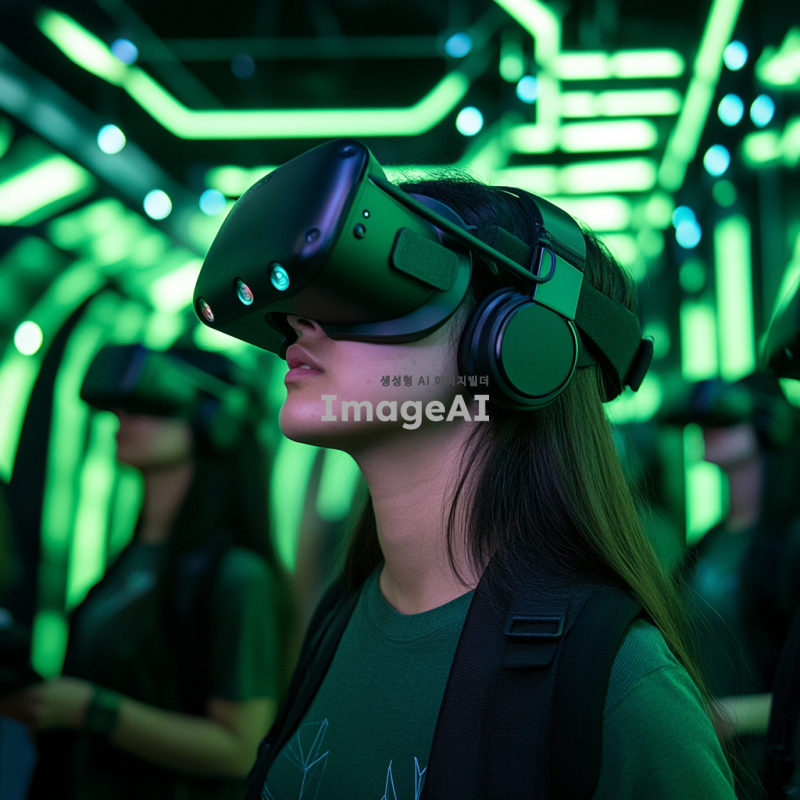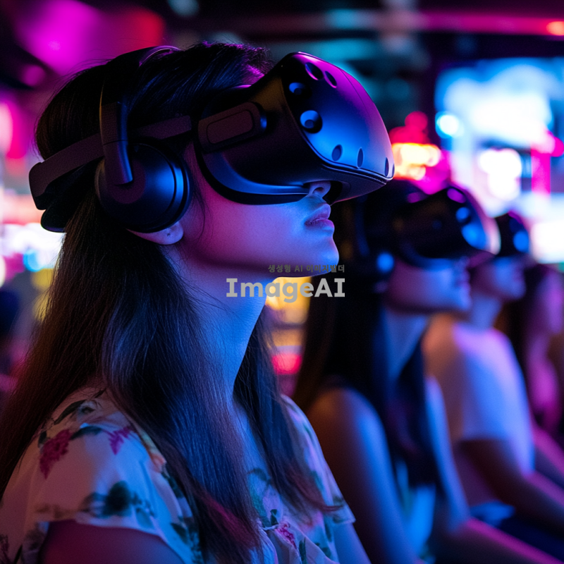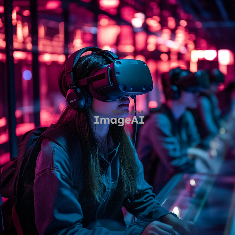VR 헤드셋을 착용한 사람들이 오징어 게임의 징검다리 게임을 체험하는 모습, 긴장감 넘치는 분위기, 현실감 넘치는 가상 환경, 참가자들의 집중한 표정, 가상 현실 속에서의 다리와 장애물, 생생한 색감과 디테일, 현대적인 VR 장비와 기술의 조화, 몰입감 있는 게임 플레이 장면, 다양한 각도에서 본 참가자들의 모습.