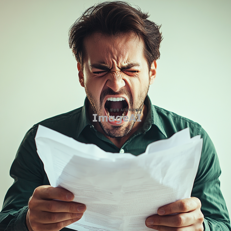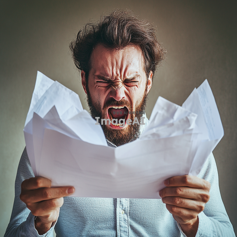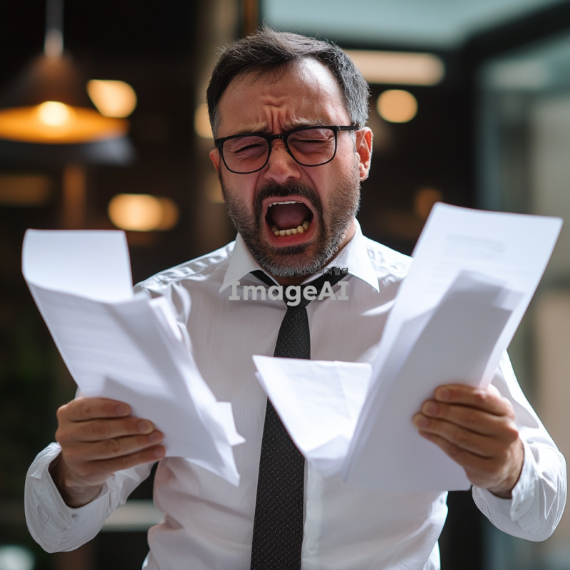 소리치는 남성, 서류를 찢는다