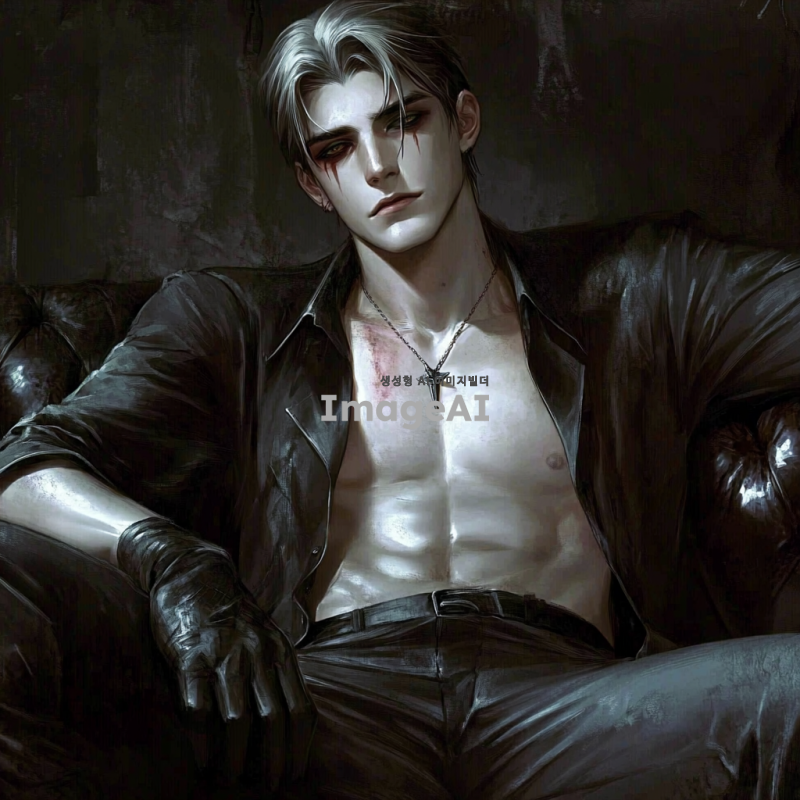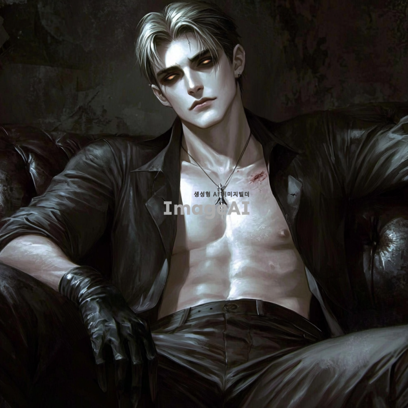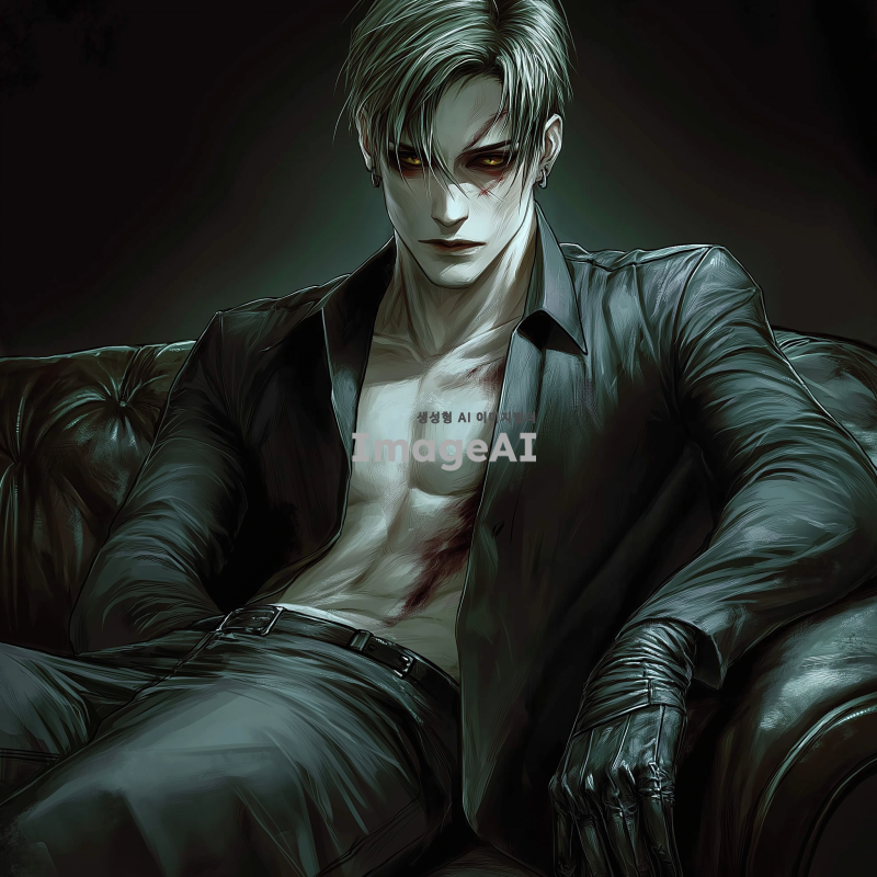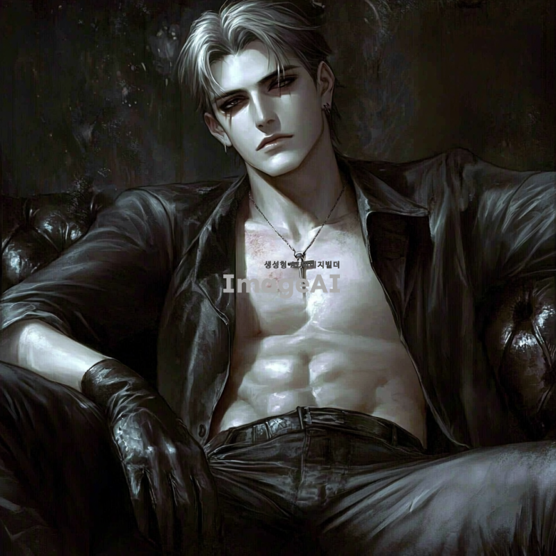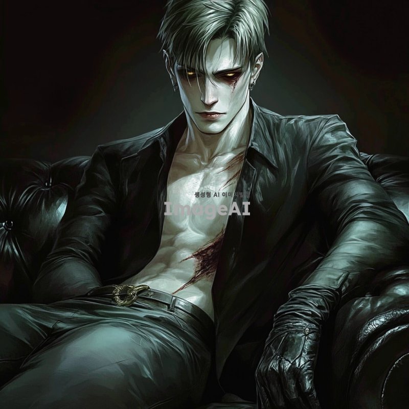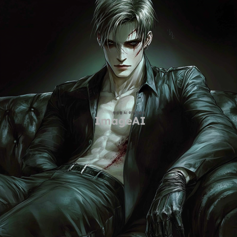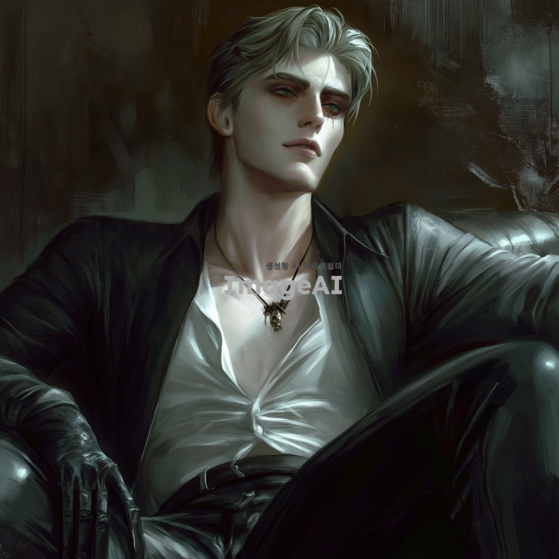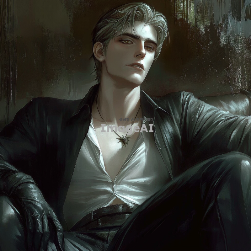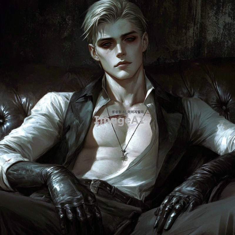 매우 잘생긴 남자, 날카로운 특징, 차가운 표정, 금발 머리, 애니메이션 아트와 비주얼 노벨 캐릭터 디자인 스타일, 창백한 피부색, 넓은 어깨와 좁은 허리를 가진 근육질의 몸이 가죽 소파에 앉아 있으며, 풀린 셔츠와 손에 장갑을 끼고 있다. 뱀파이어 느낌, 어두운 배경, 클로즈업 초상화, 판타지, 애니메이션 스타일, 어두운 회색 색조, 게임 커버를 위한 그림, 전체 길이, 애니메이션 스타일, 전체 몸 포즈, 애니메이션 리얼리즘, 애니메이션 아트, 아트스테이션 트렌딩, 디지털 일러스트레이션, 높은 디테일, 날카로운 초점, 일러스트레이션, 판타지 아트, 어두운 분위기, 만화 아트스타일, 애니메이션 아트, 판타지 아트.