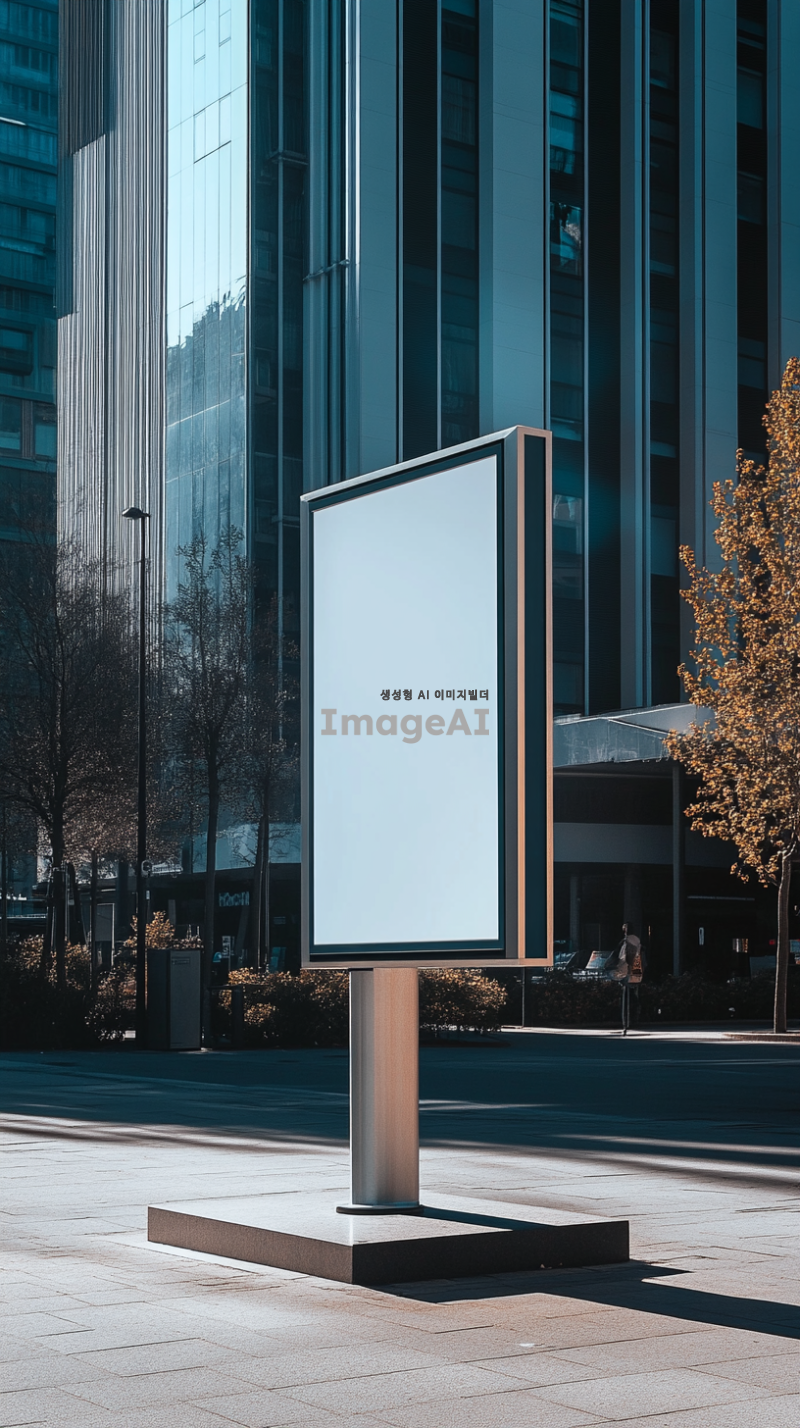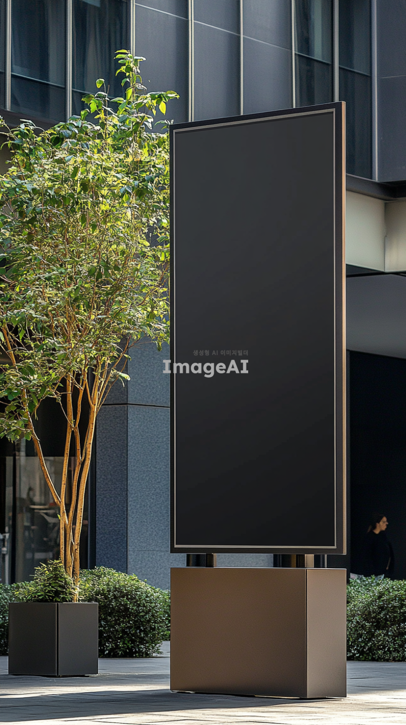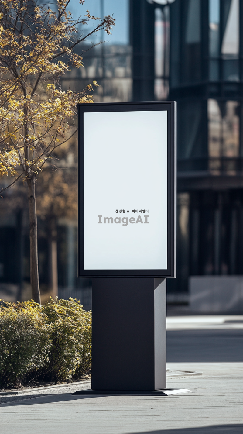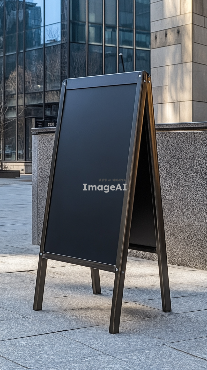 산업적인 느낌이 나는 철재 입간판, 견고하고 내구성이 뛰어난 금속 재질, 현대적이고 세련된 디자인, 간결한 텍스트와 심볼이 포함된 깔끔한 레이아웃, 도시 환경에 잘 어울리는 스타일, 빛을 반사하는 매끄러운 표면, 강한 존재감을 주는 색상 대비, 주변과 조화를 이루는 자연스러운 배치.