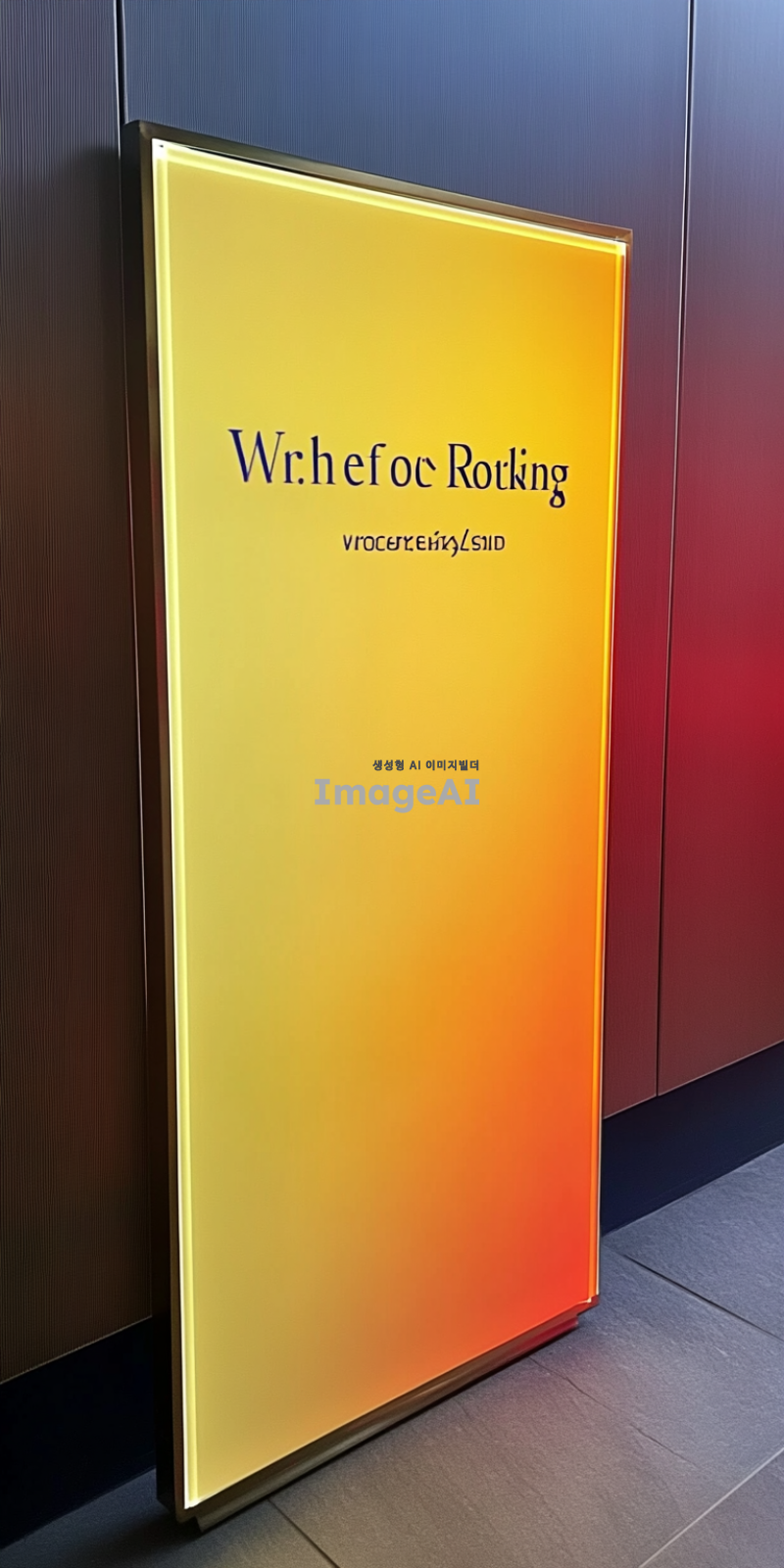 밝고 선명한 컬러의 아크릴 사인보드, 현대적인 디자인, 고급스러운 마감, 주변 조명으로 강조된 텍스트, 매끄럽고 깔끔한 테두리, 다양한 색상이 조화를 이루는 배경, 실내 환경에 잘 어울리는 세련된 스타일, 텍스트는 간결하고 읽기 쉬운 폰트 사용, 사인보드의 크기는 중간 정도, 시선을 끄는 디자인 요소 추가.