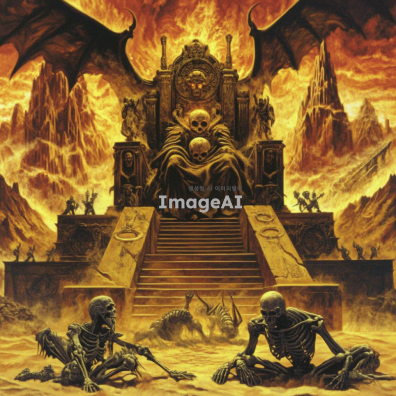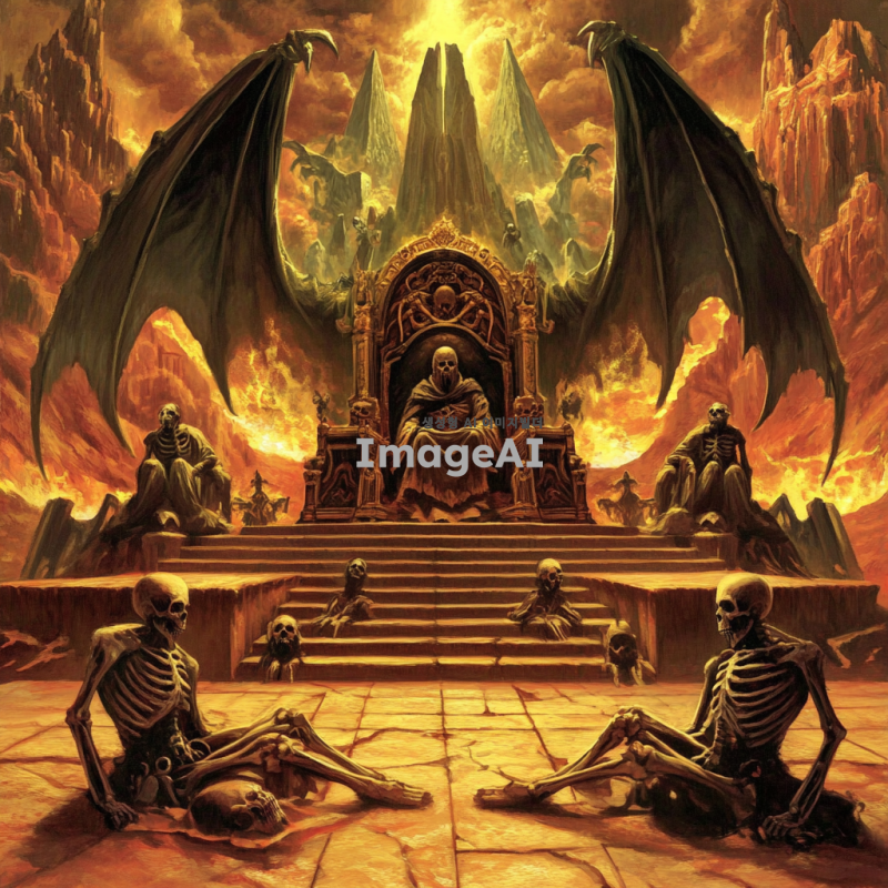 지옥에 있는 왕좌의 해골 2개를 넣어주고 지옥왕 앞에는 해골 병사들과 해골 드래곤 지옥 괴물이 있다