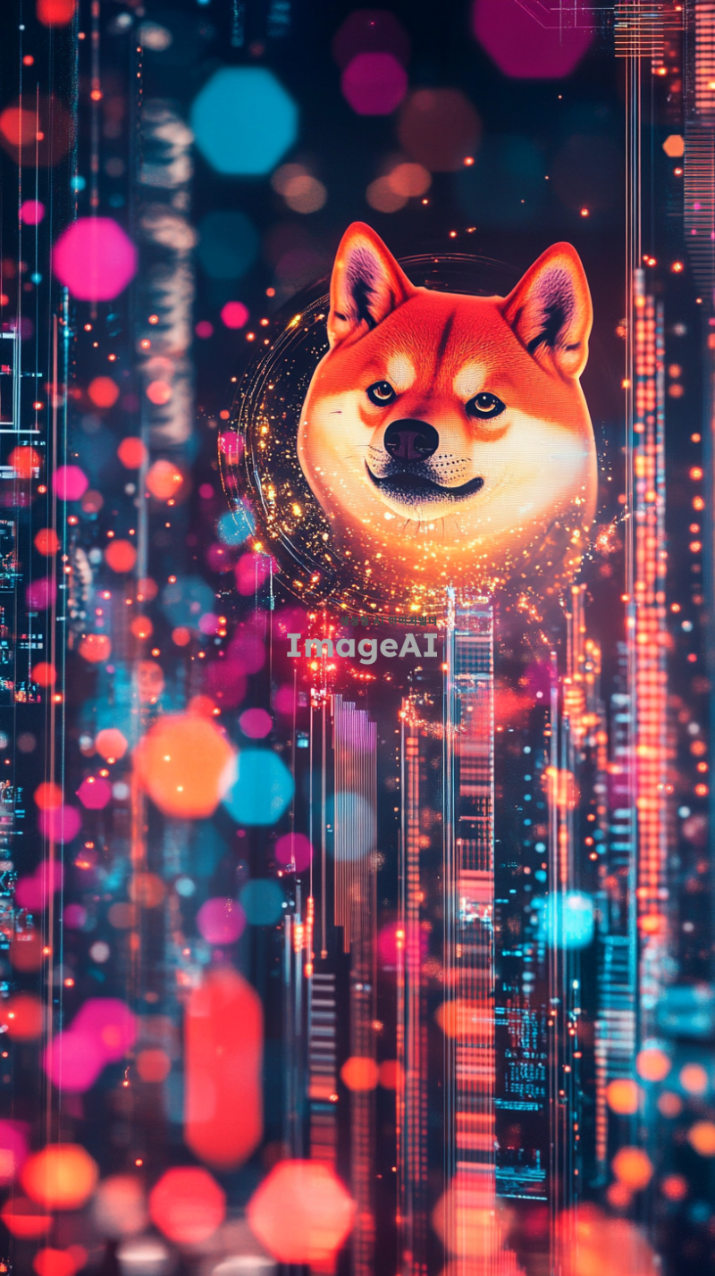 비트코인의 상승과 함께 도지코인과 시바이누 코인의 가치가 상승하는 모습을 표현한 이미지, 암호화폐 그래프와 함께 도지코인과 시바이누 코인의 로고가 강조된 장면, 디지털 화폐의 미래를 상징하는 현대적이고 세련된 분위기, 다양한 색상의 빛과 반짝임이 있는 배경, 기술적이고 혁신적인 느낌을 주는 요소들 포함.