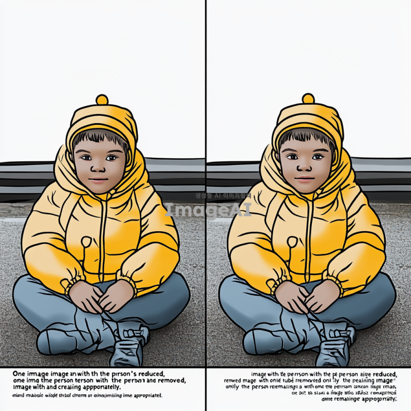 여기서 사람 크기 줄여준 이미지 1개, 사람이랑 튜브 공 지운 이미지 1개, 사람만 지운 이미지 1개, 남은 1개 이미지는 그냥 적절하게 만들어봐
