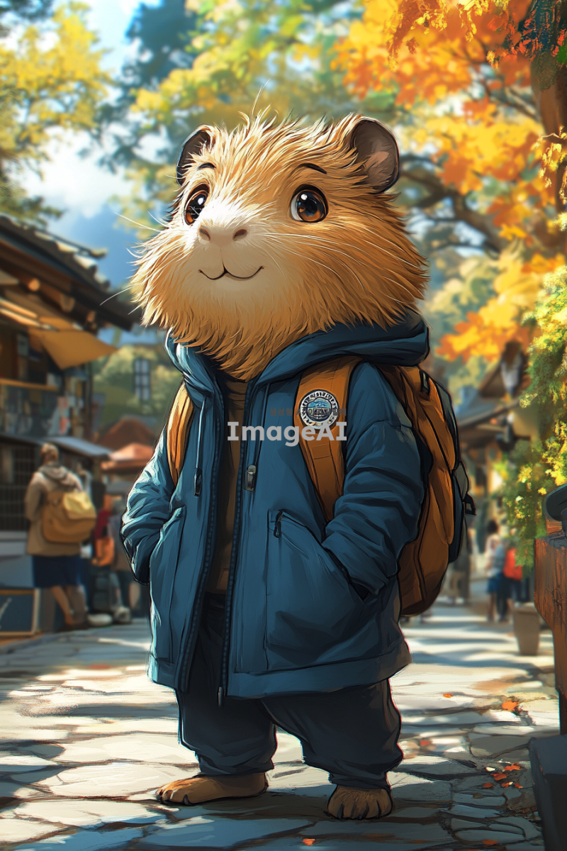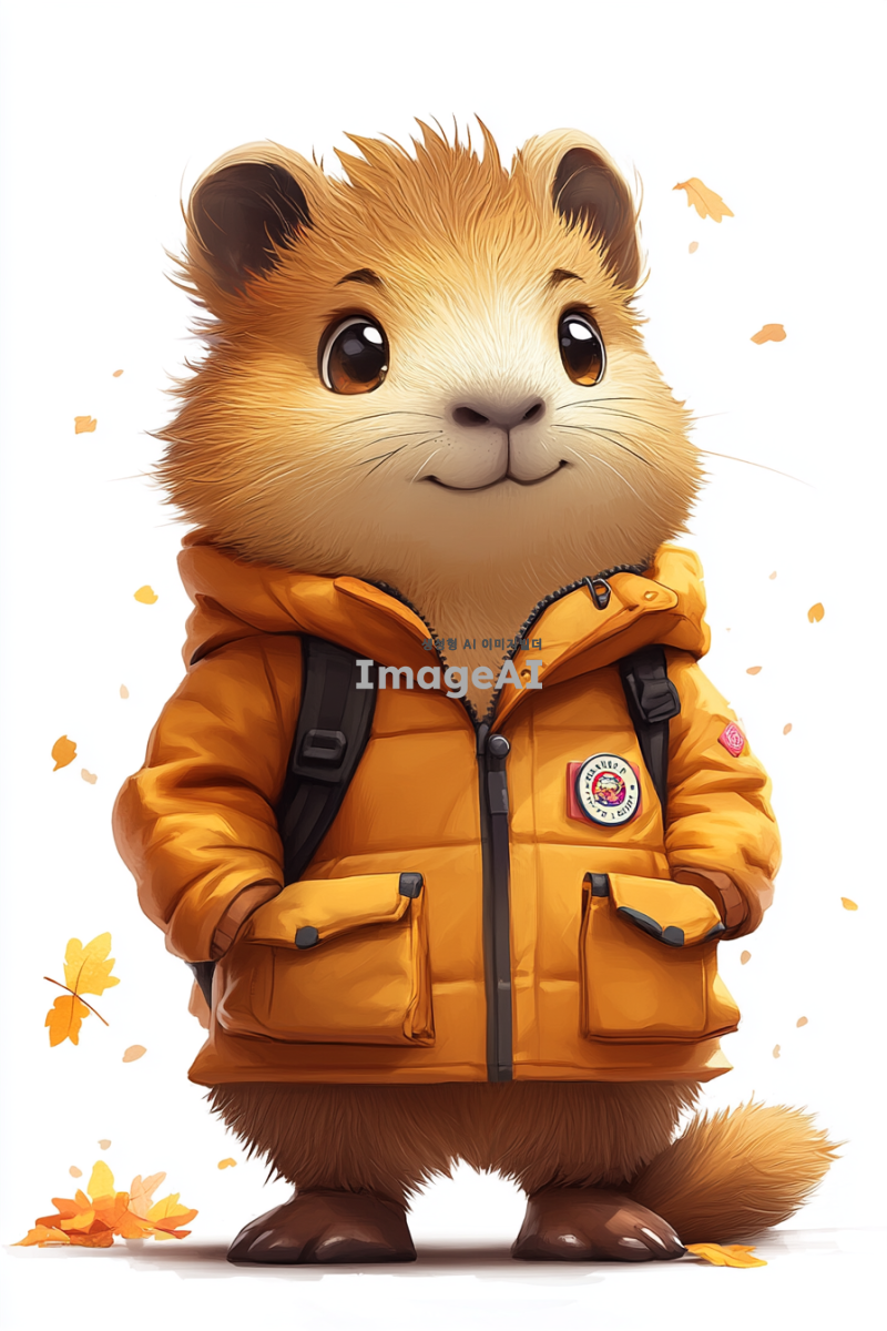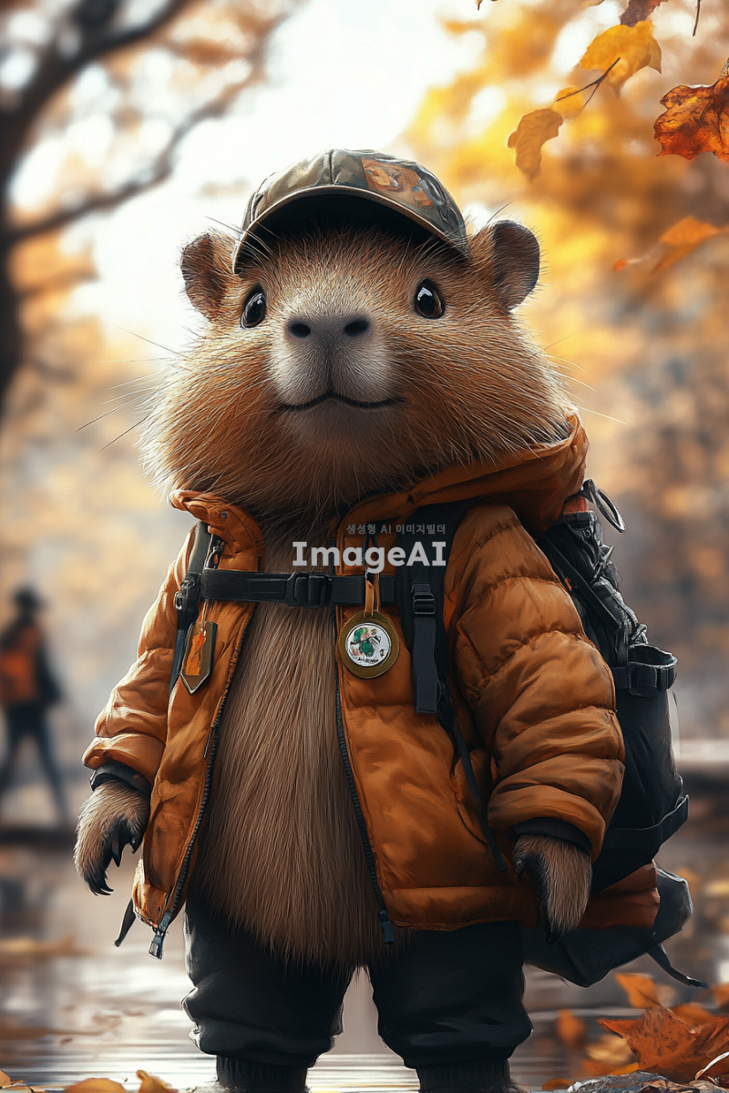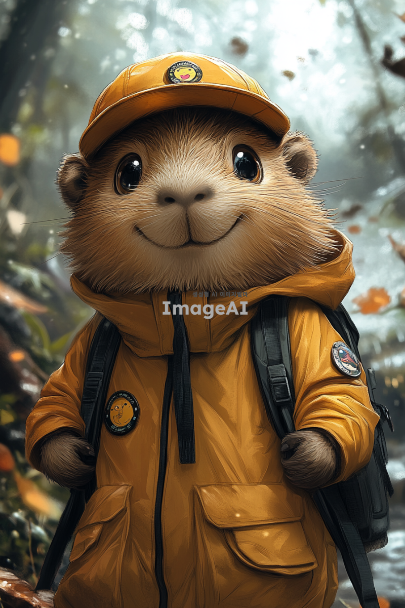 청소년들이 좋아할 만한 귀엽고 깜찍한 카피바라 캐릭터 디자인. 카피바라는 밝은 표정과 큰 눈을 가지고 있으며, 부드러운 갈색 털과 둥근 몸매를 특징으로 한다. 캐릭터는 다양한 액세서리와 의상을 통해 청소년 활동에 참여할 때마다 진화하는 모습을 보여준다. 예를 들어, 활동에 따라 모자, 배지, 가방 등의 아이템이 추가되거나 변화할 수 있으며, 이로 인해 캐릭터의 개성이 점점 더 뚜렷해진다. 배경은 청소년들이 자주 모이는 공원이나 학교를 연상시키는 밝고 활기찬 분위기이다.