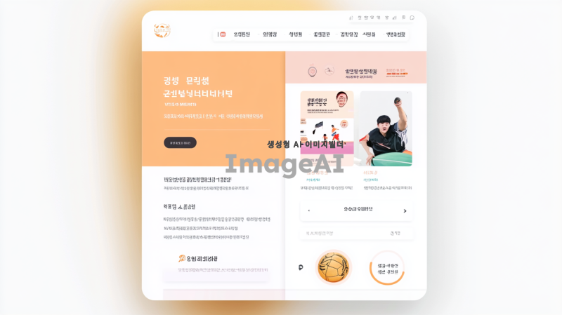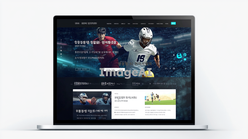 상단 네비게이션바가 있는 웹사이트 화면, 깔끔하고 현대적인 디자인, 서치바 포함, 스포츠 규칙 섹션 강조, 직관적이고 사용자 친화적인 인터페이스, 청량한 색상 팔레트, 한국인 사용자 타겟, 모바일과 데스크톱에서 모두 잘 보이는 반응형 디자인, 스포츠 관련 아이콘과 그래픽 요소 포함, 깔끔한 타이포그래피 사용.