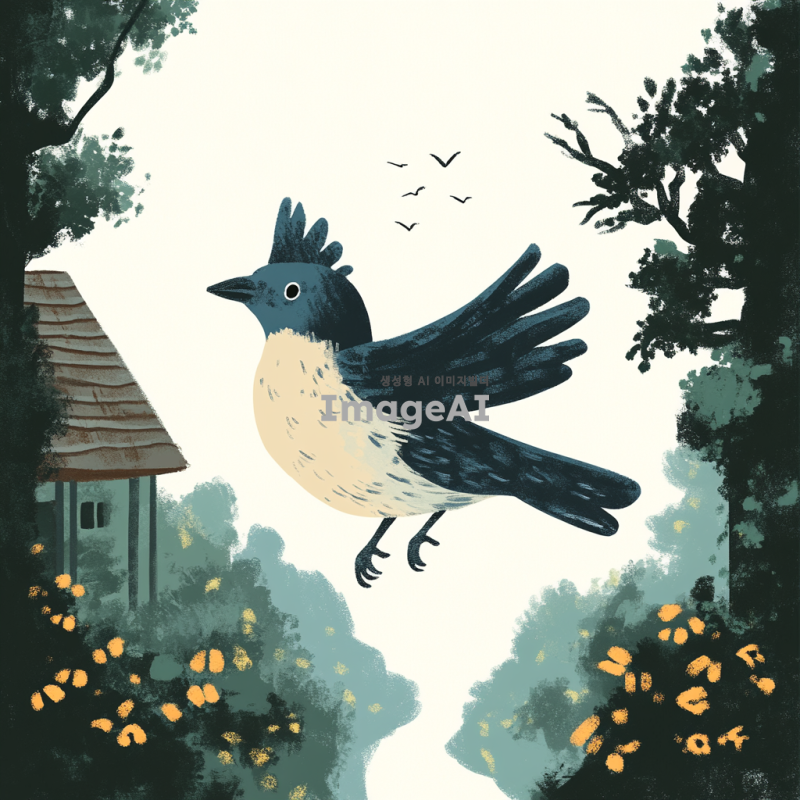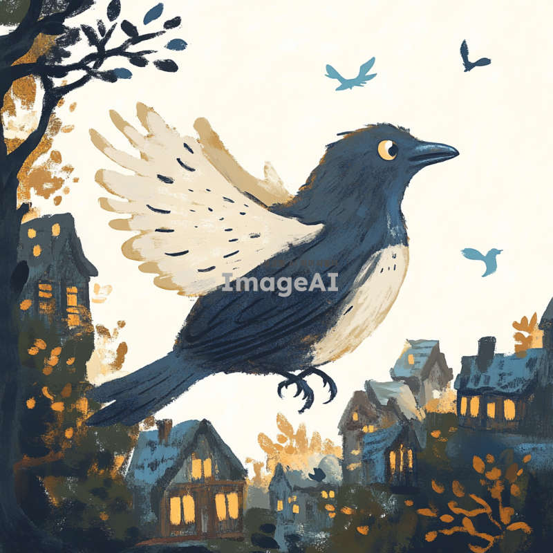 숲 속 마을에 사는 친근함과 여유를 가진 까마귀