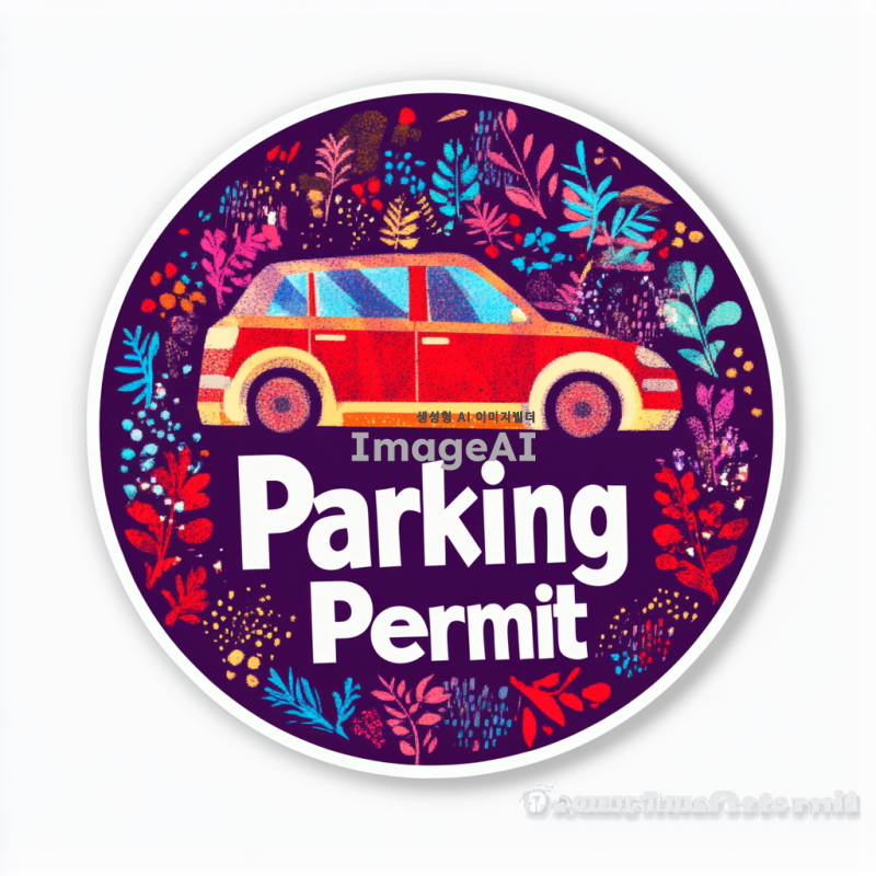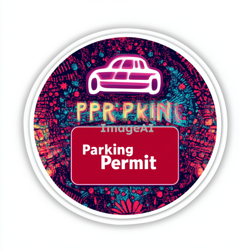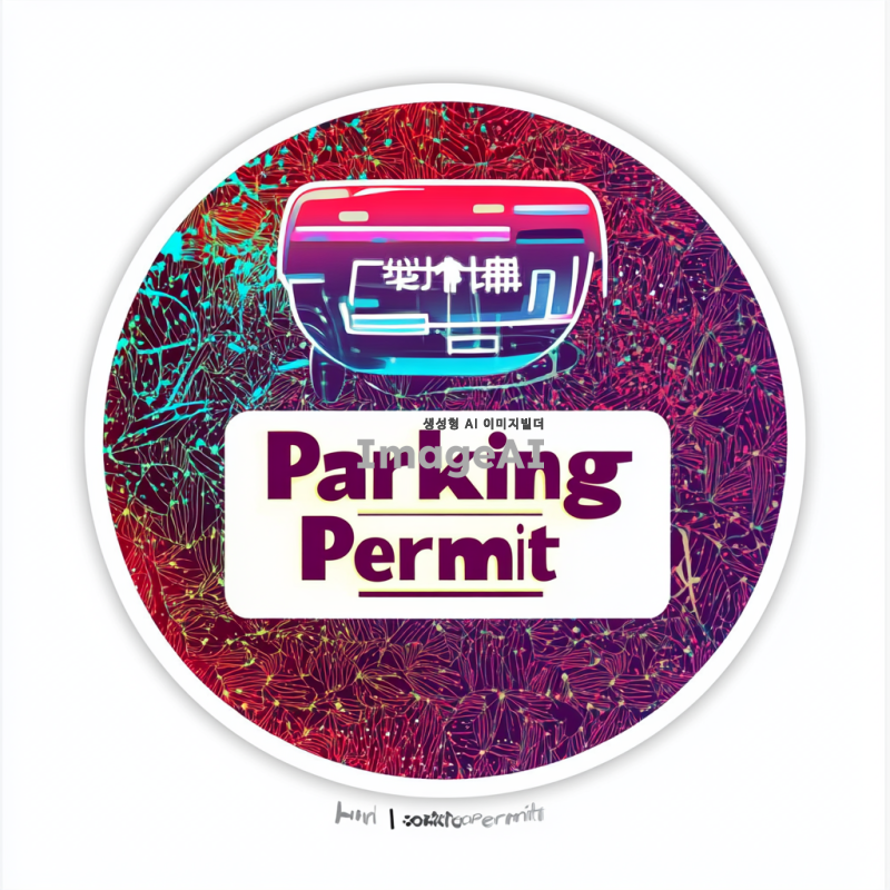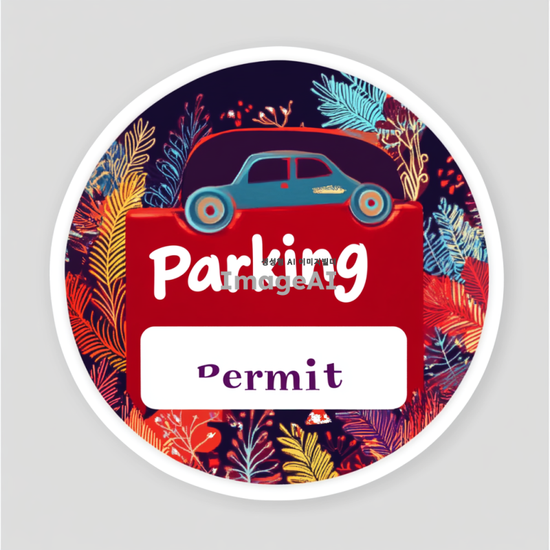 밝고 선명한 색상의 주차 스티커 디자인, 자동차 아이콘과 함께 "주차 허가"라는 문구를 포함하고, 배경은 심플한 패턴으로 구성, 스티커의 모양은 원형으로 설정, 깔끔하고 현대적인 스타일, 글씨체는 굵고 읽기 쉬운 서체 사용, 스티커 크기는 10cm 정도로 설정.