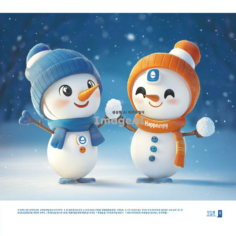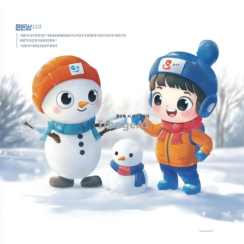 한국가스안전공사 캐릭터 '안전이'와 '행복이'가 겨울철 목도리를 메고 눈사람을 만드는 모습. 눈을 굴리고 있다