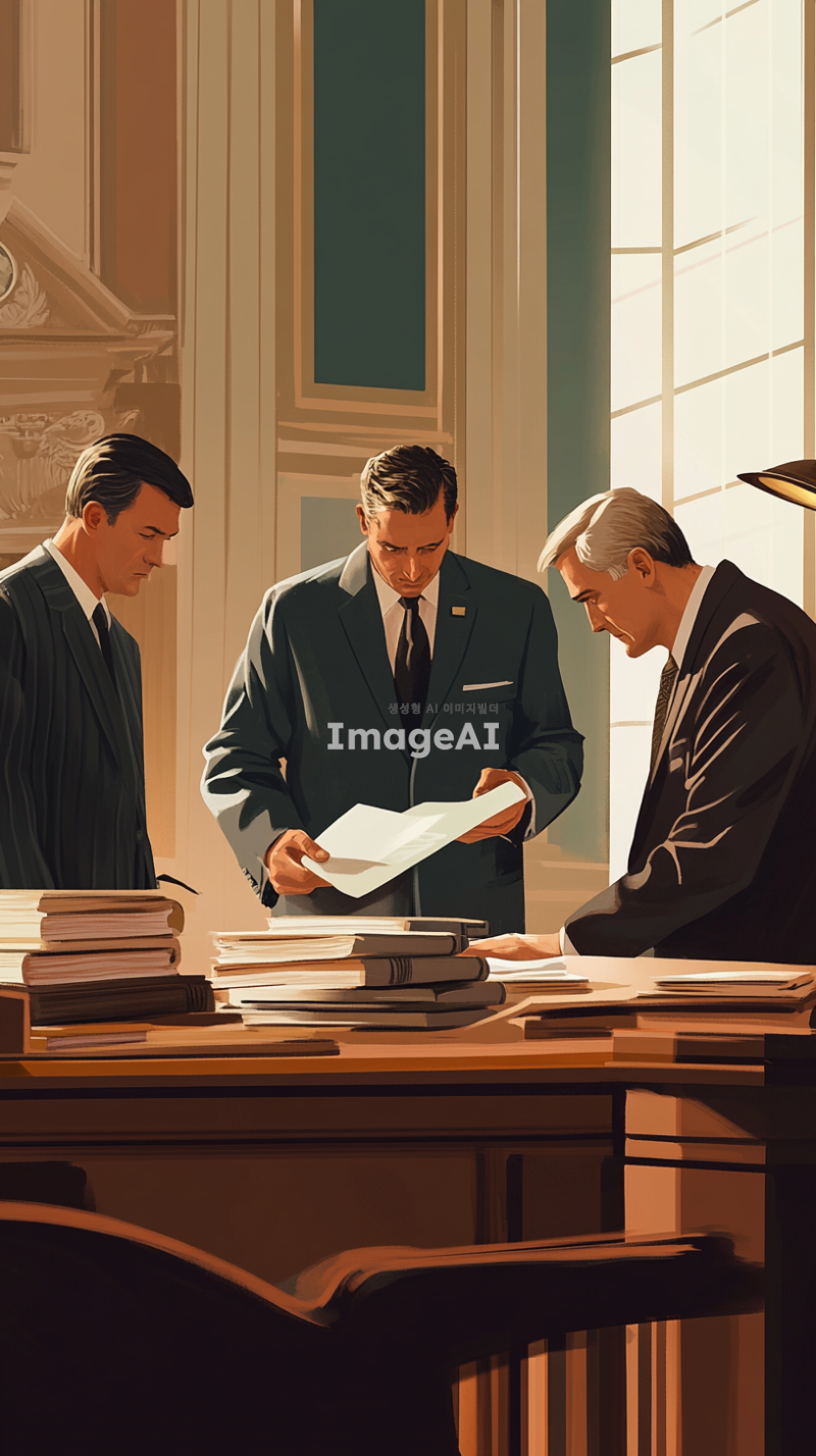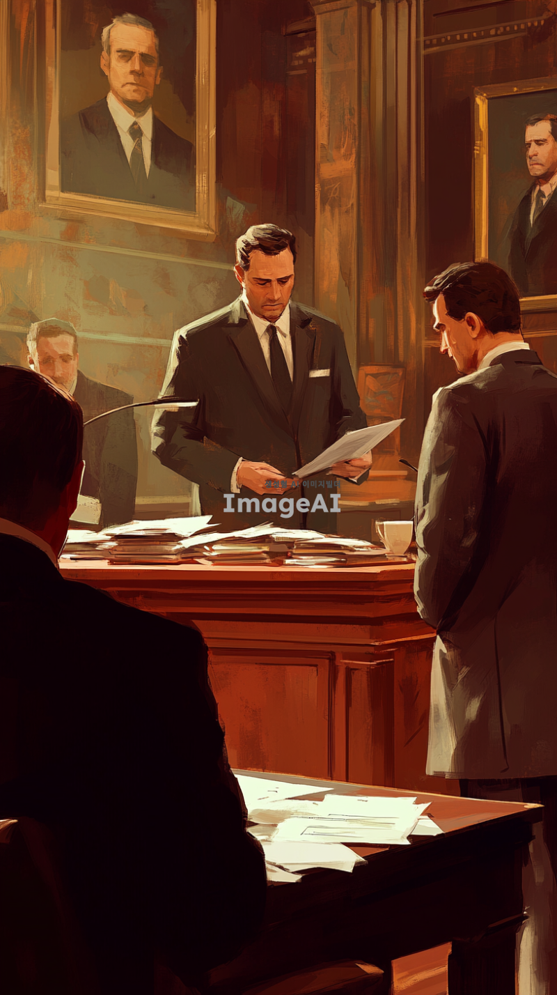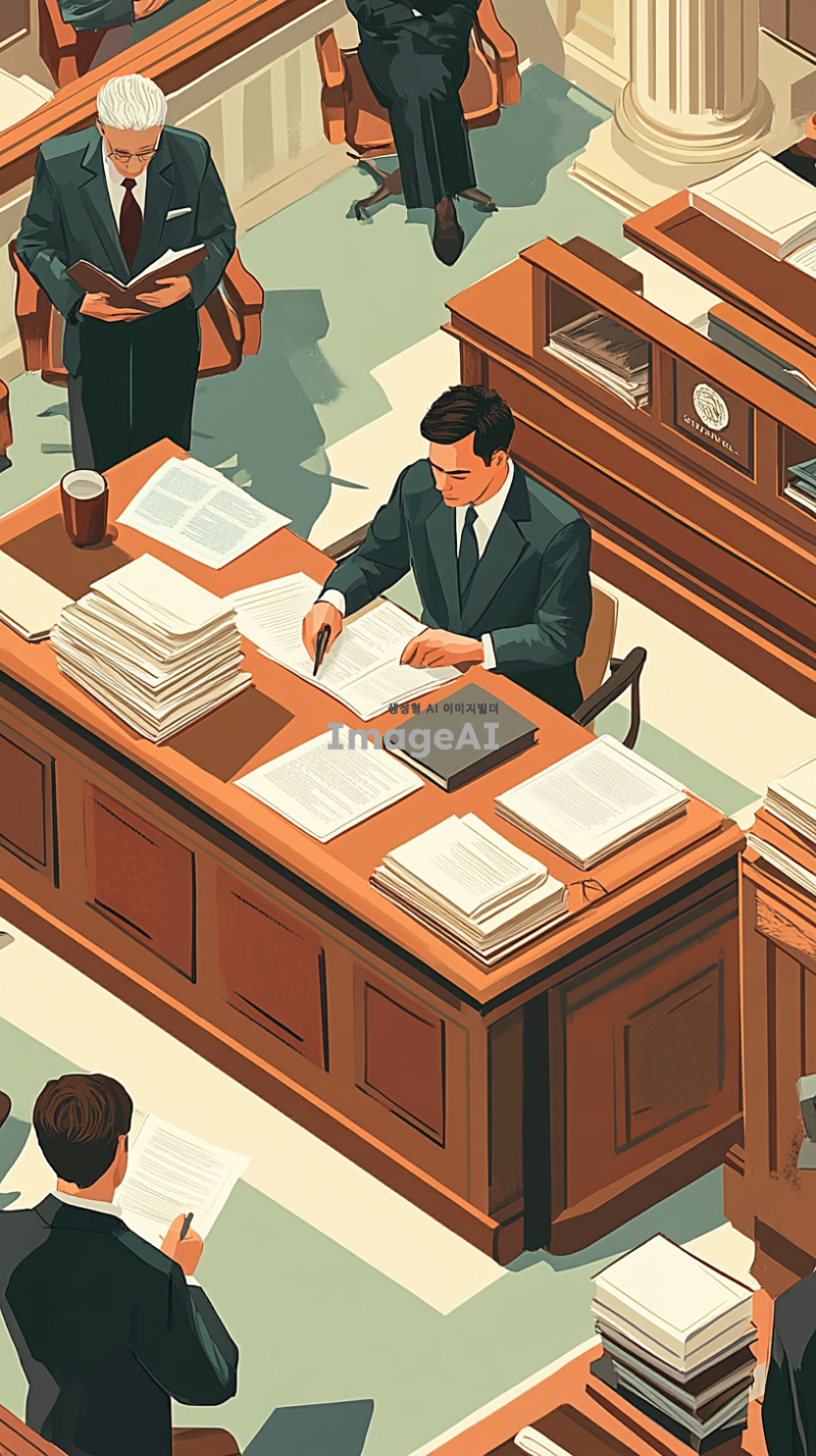SEC 증권거래위원회와 관련된 법적 공방을 주제로 한 이미지. 법정에서 서류를 검토하는 변호사들, 법정의 장엄한 분위기, 법률 서적과 문서들이 쌓여 있는 책상, 법정에서 진지한 표정으로 토론하는 변호사와 판사, 법정의 내부 장식과 법률 관련 상징들이 강조된 장면