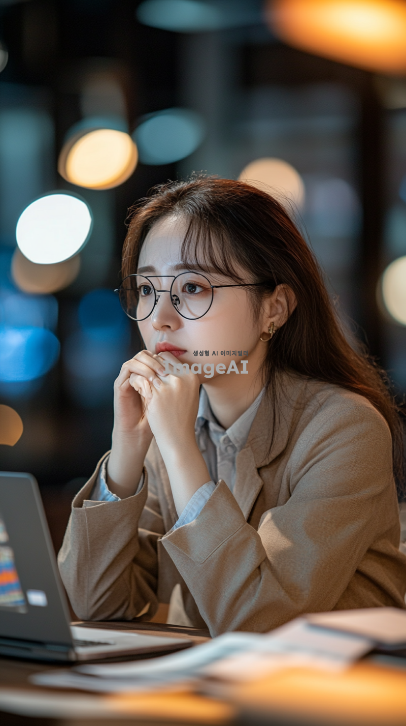 고민에 잠긴 사람들의 모습, 20대 이상의 다양한 연령대와 성별의 한국인들, 각자 다른 장소에서 깊은 생각에 잠겨 있는 모습, 손으로 턱을 괴거나 눈을 감고 있는 포즈, 주변에 코인 차트가 그려진 노트북이나 코인 관련 서적들이 놓여져있음, 차분하고 집중된 분위기, 따뜻한 색감과 부드러운 조명.