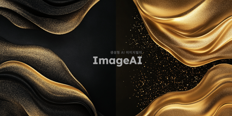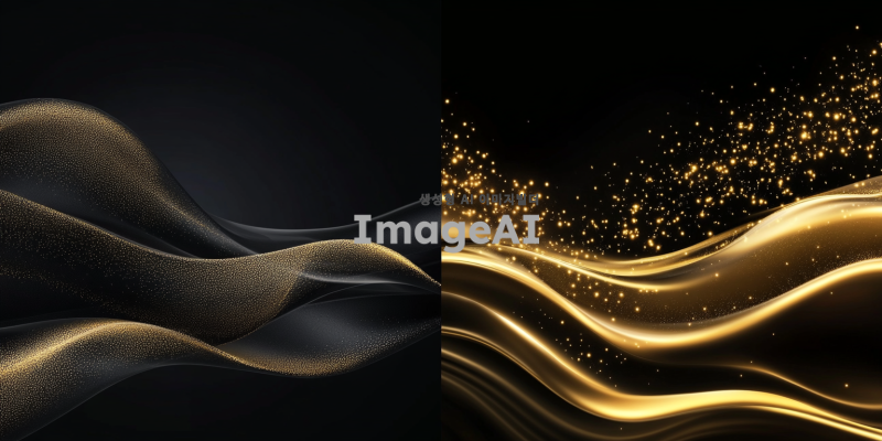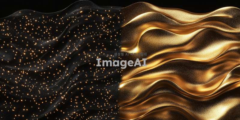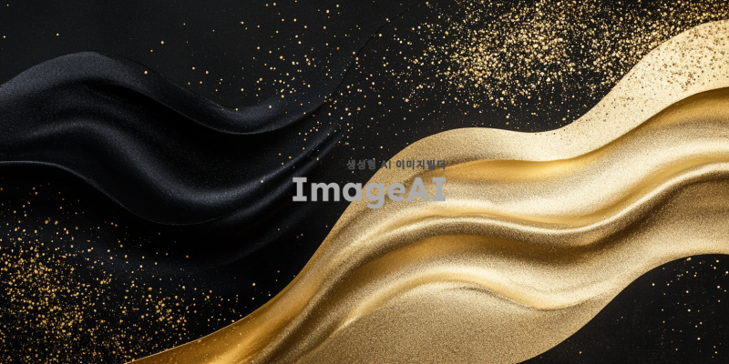 좌측 배경은 깊고 풍부한 검정색으로 채워져 있으며, 우측 배경은 눈부시게 반짝이는 금색으로 이루어져 있다. 금색 부분은 마치 황금빛 물결이 흐르는 듯한 느낌을 주며, 빛을 반사하는 듯한 효과가 있다. 두 배경의 경계는 매끄럽고 자연스럽게 이어지며, 서로 대조를 이루면서도 조화를 이룬다.