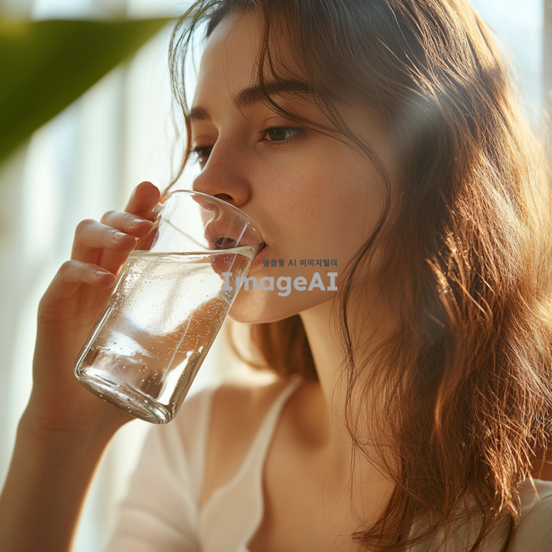 볼빅 생수를 마시고있는 사람