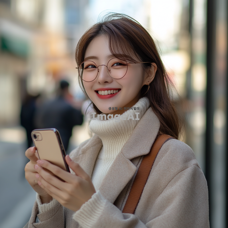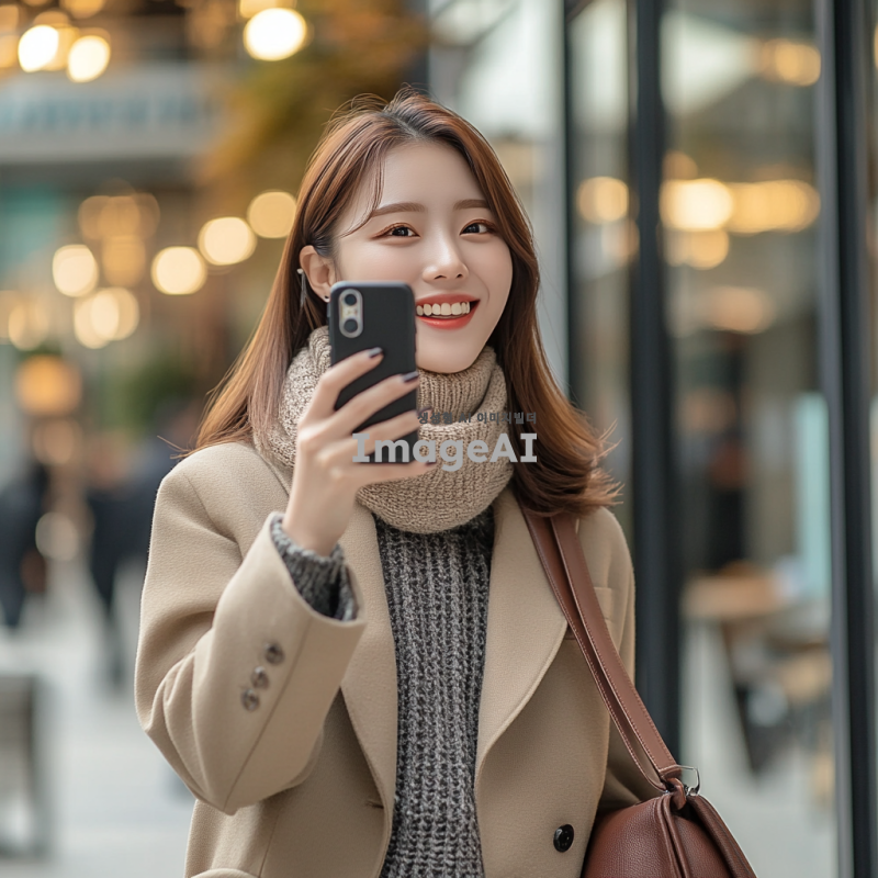 현대적인 한국 여성, 세련된 도시 배경에서 다양한 패션 스타일을 시도하는 모습, 캐주얼한 일상복부터 세련된 오피스룩까지 다양한 의상, 밝고 자연스러운 미소, 스마트폰으로 사진을 찍는 모습, SNS에 올릴 사진을 고르는 장면, 자연광이 비치는 카페나 거리에서의 일상적인 순간, 패션과 일상을 즐기는 현대적인 라이프스타일, 트렌디한 액세서리와 소품, 여유롭고 활기찬 분위기.