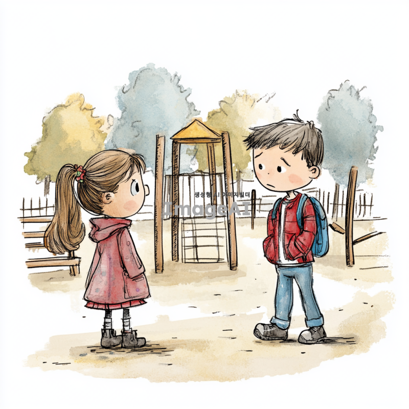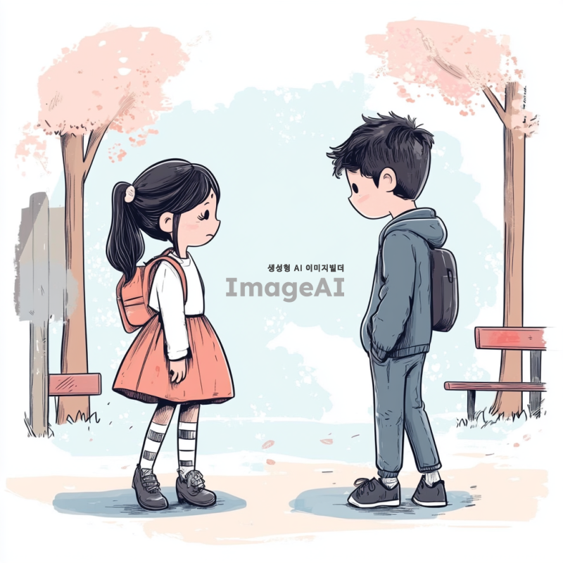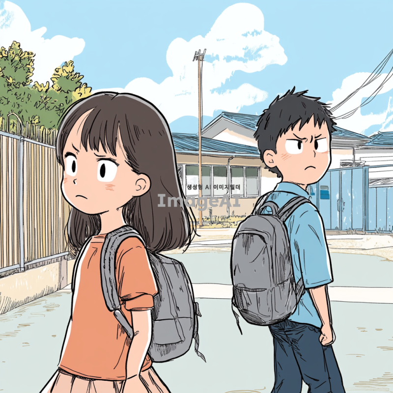 운동장에서 초등 남학생에게 초등 여학생이 퇴짜를 맞았다. 남학생은 여학생을 뒤로하고 걸어가는 모습을 만화 형식으로 그려줘