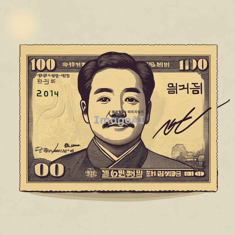 한국 만 원 짜리 지폐 한 장 그려줘. 근데 거기 개인적으로 싸인 하나가 적인 그림을 그려줘 만화 형식으로
