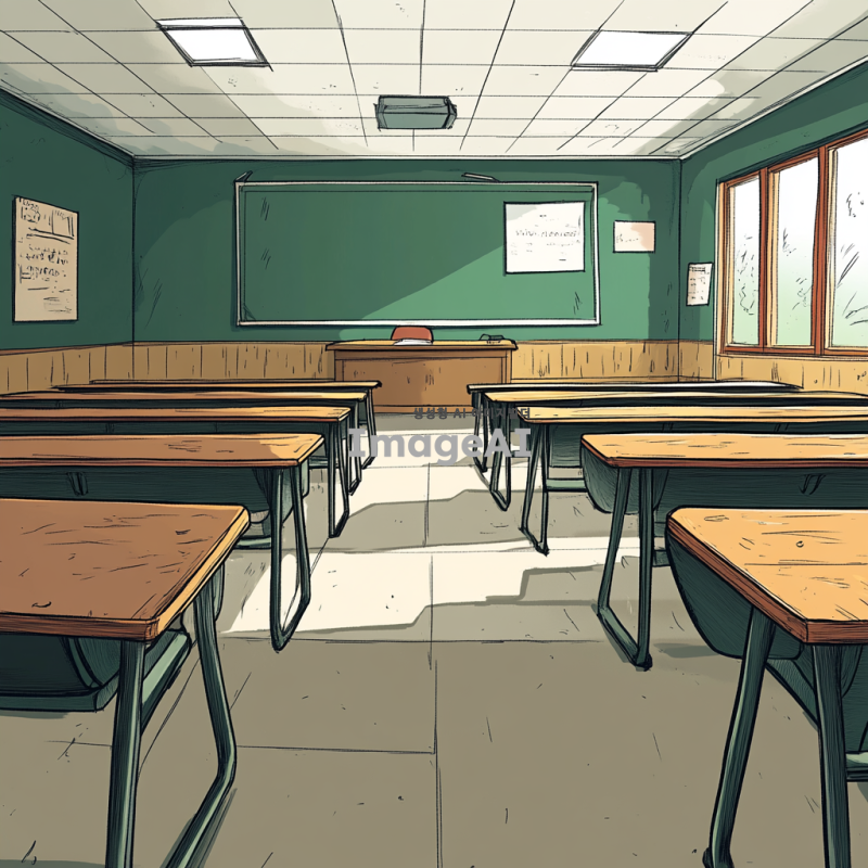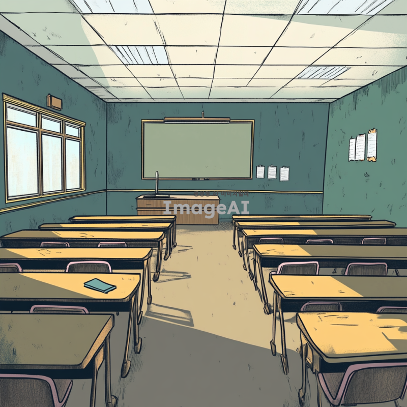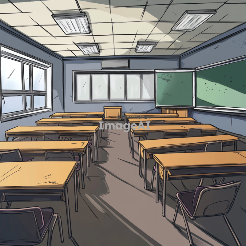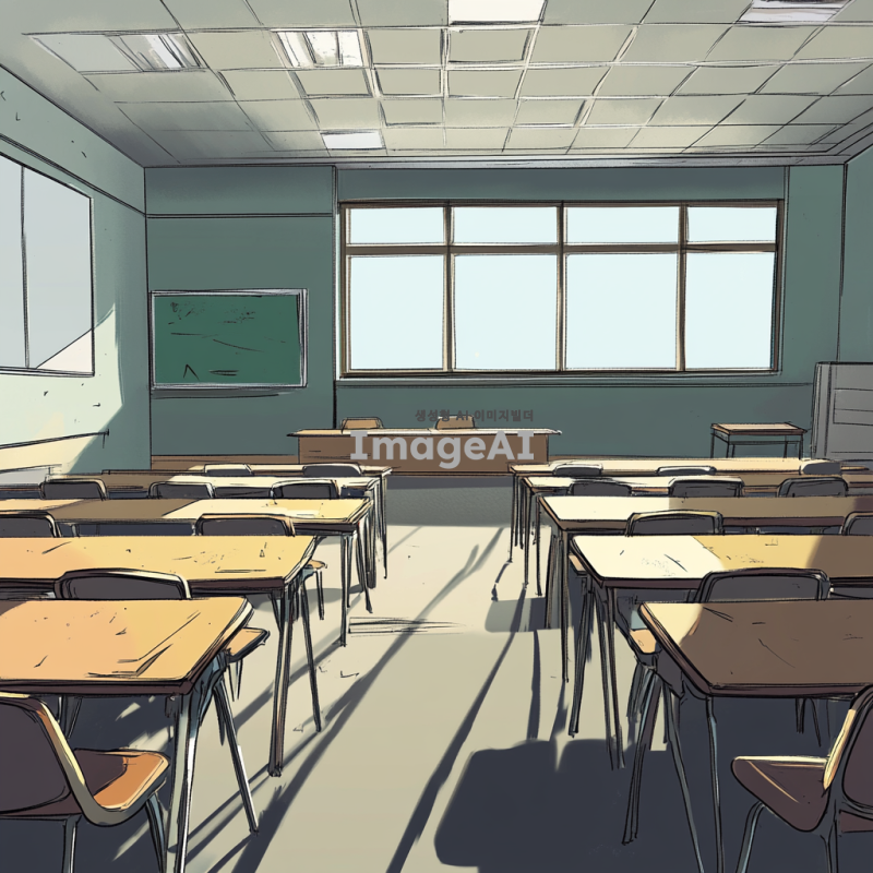 텅 빈 교실 모습 하나 그려줘. 만화 형식으로