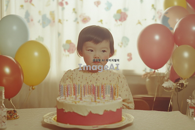 1세부터 6세까지 매년 생일파티를 한 아이의 모습이 필름처럼 스쳐지나가는 그림
