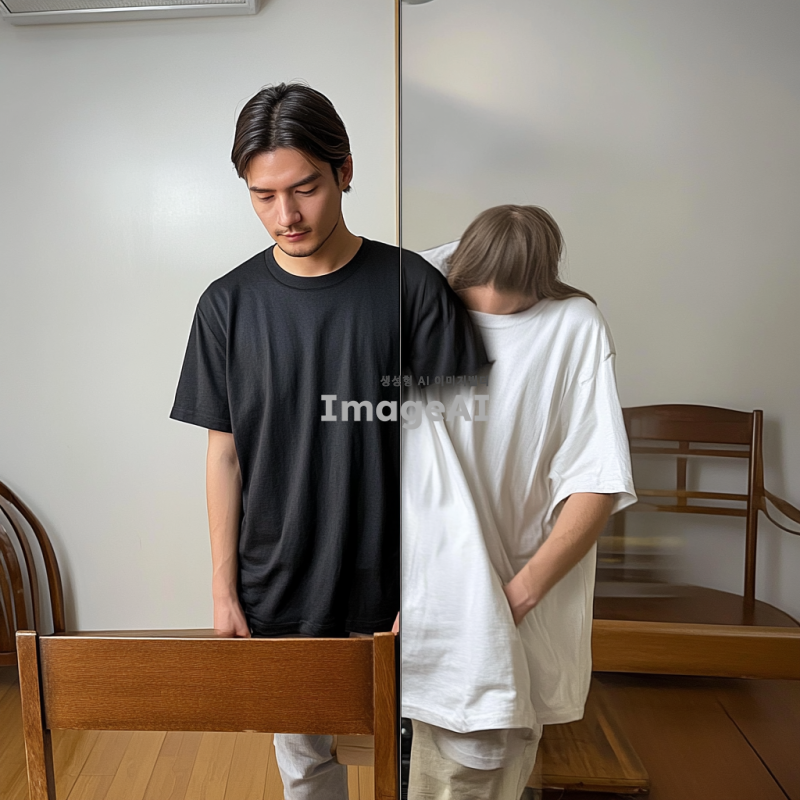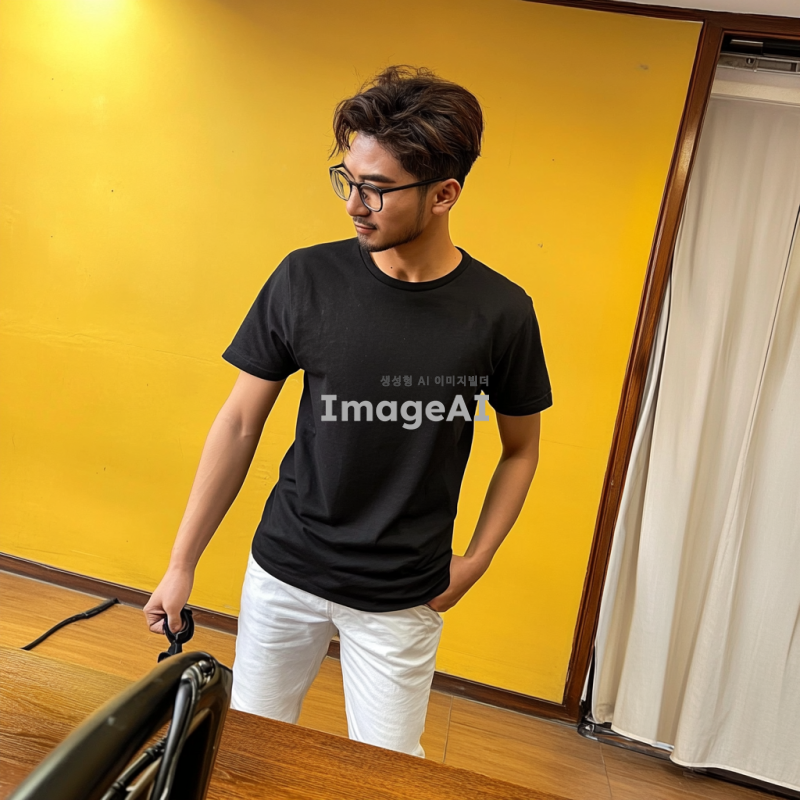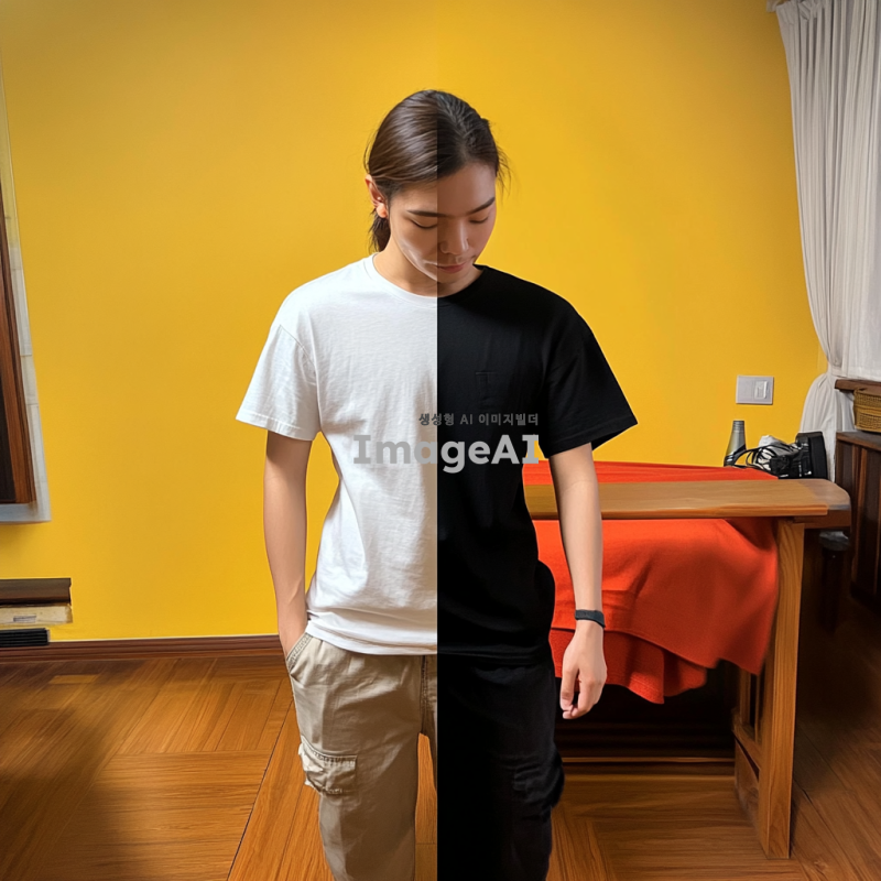 배경은 그대로 방향을 반대로 바꿔주고 티셔츠를 검은색으로 바꿔줘