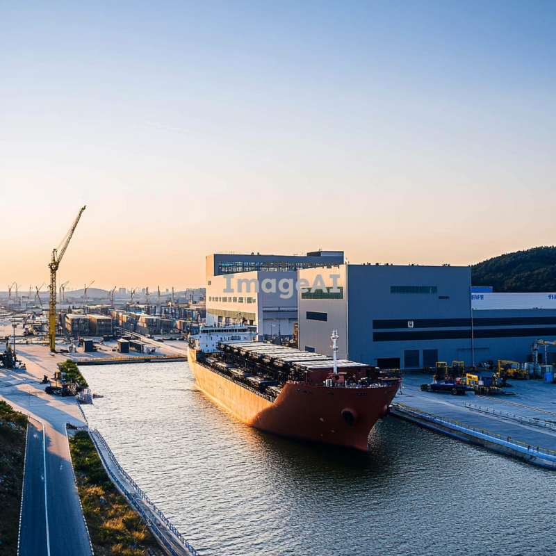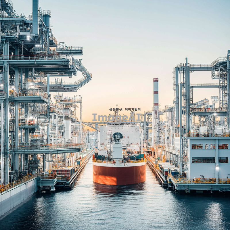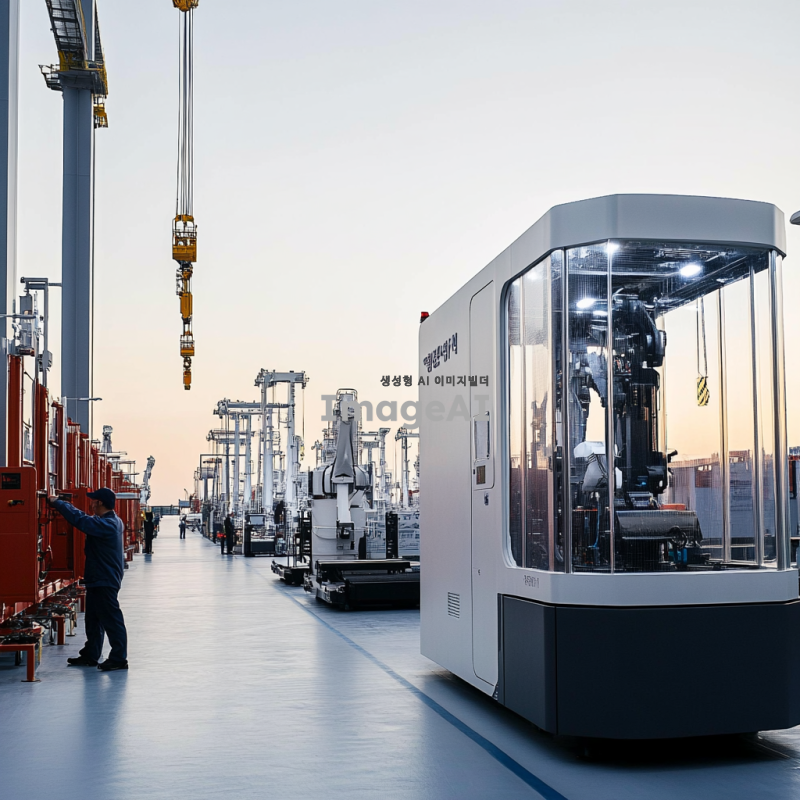 현대적인 한국의 산업 현장을 배경으로, 최첨단 기술과 장비가 조화를 이루며 작업 중인 모습. 다양한 산업 분야의 전문가들이 협력하며 일하는 장면. 깨끗하고 안전한 작업 환경에서 효율적으로 일하는 모습, 첨단 로봇과 자동화 기계가 함께 있는 장면. 밝고 활기찬 분위기, 혁신적인 기술이 돋보이는 공간.