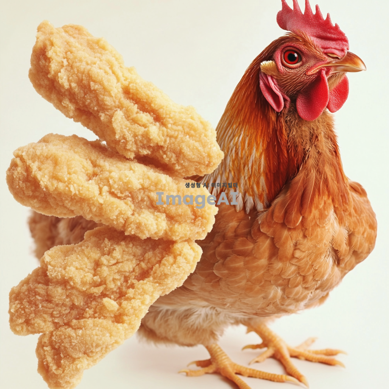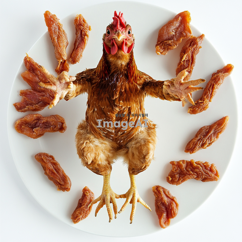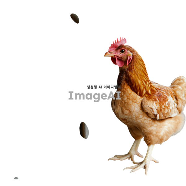 닭발이 보이고, 날개짓을 하는 닭의 그림