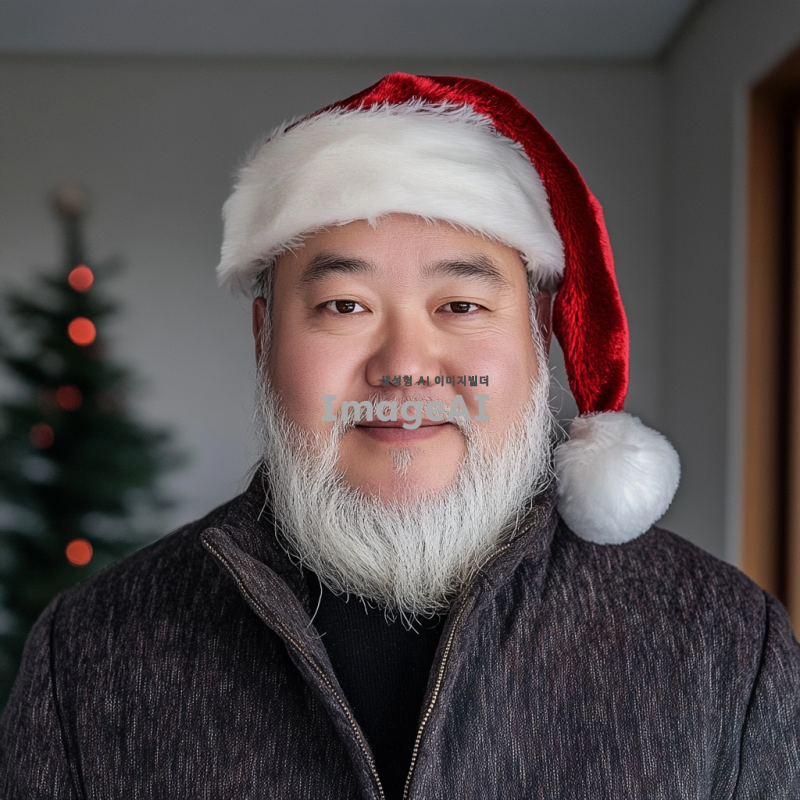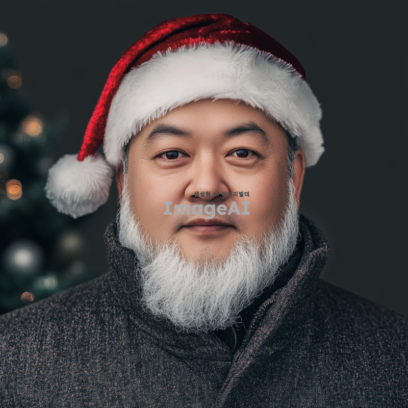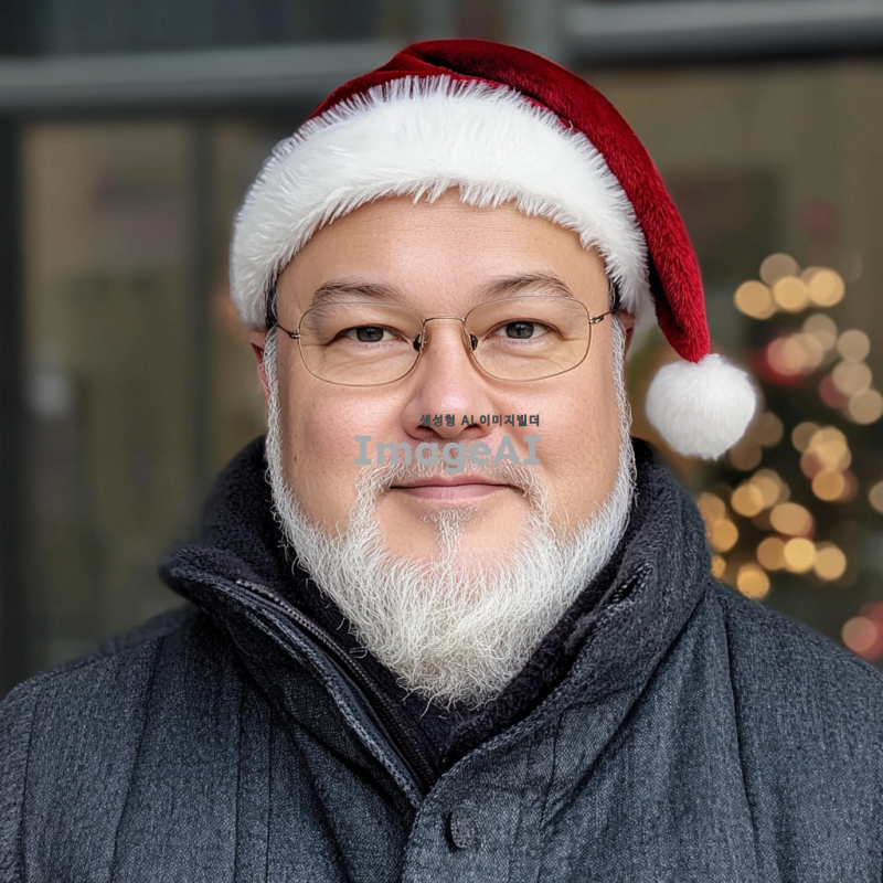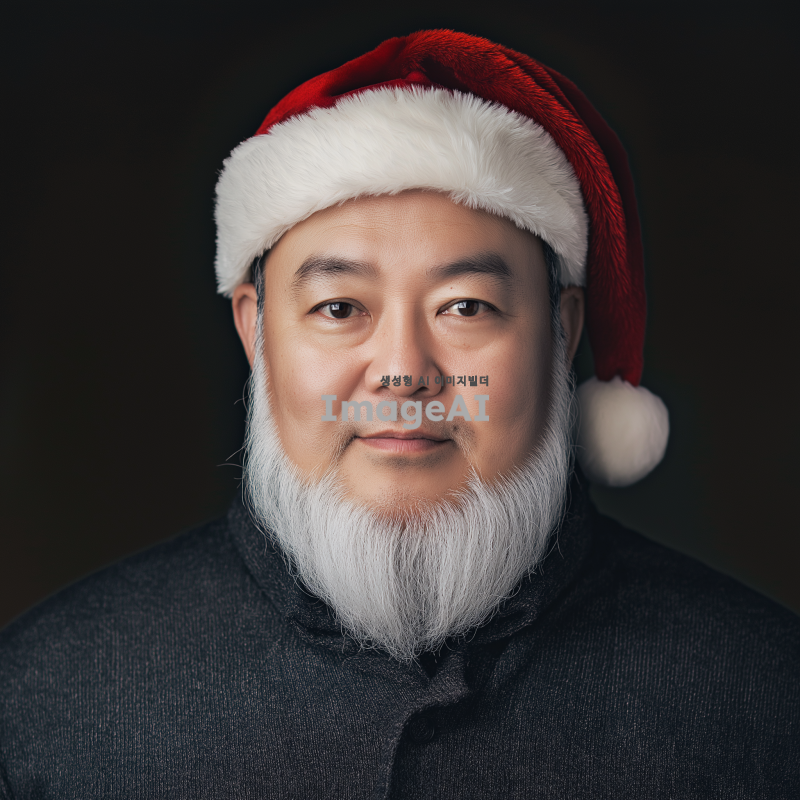산타모자를 쓰고 긴 하얀수염을 하고 산타복장을 한 사실과 같은 이미지