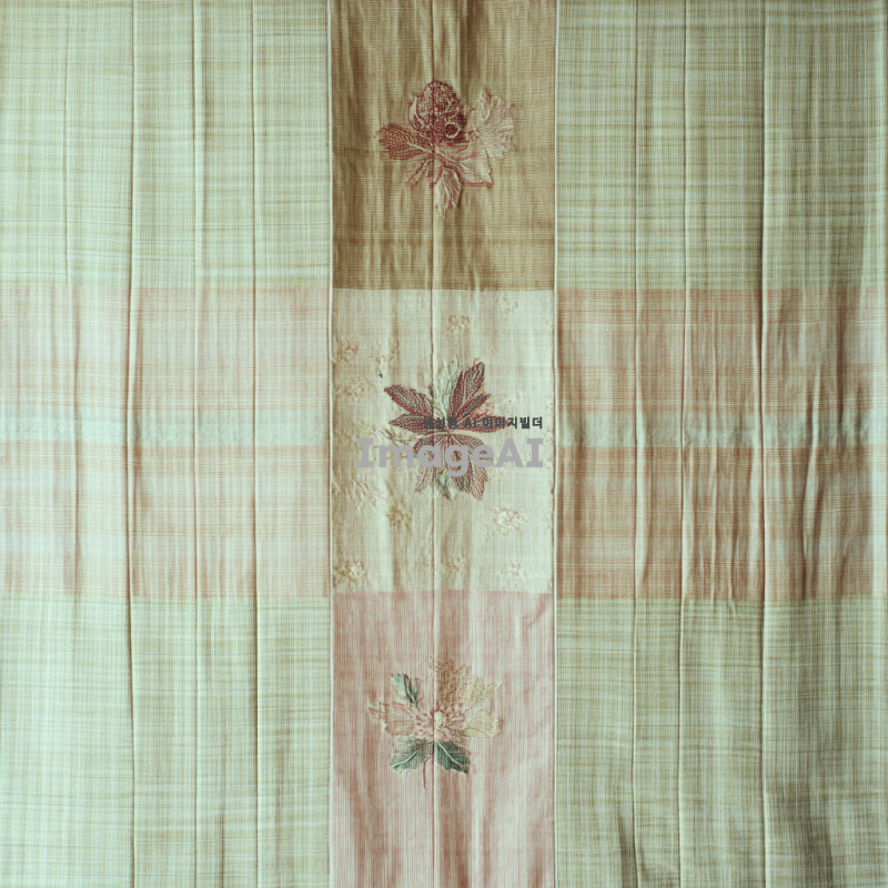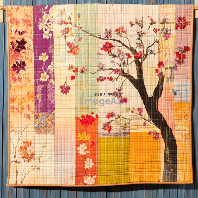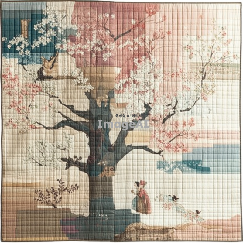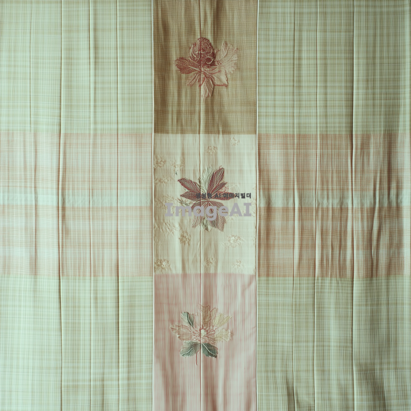 전통 한국 조각보, 다섯 개의 조각으로 구성된 패턴, 은은한 색감, 부드러운 파스텔 톤, 각 조각은 서로 다른 색상과 패턴을 가지고 있으며, 자연스럽게 어우러지는 디자인, 한국 전통 공예의 섬세함과 조화로움이 느껴지는 이미지.