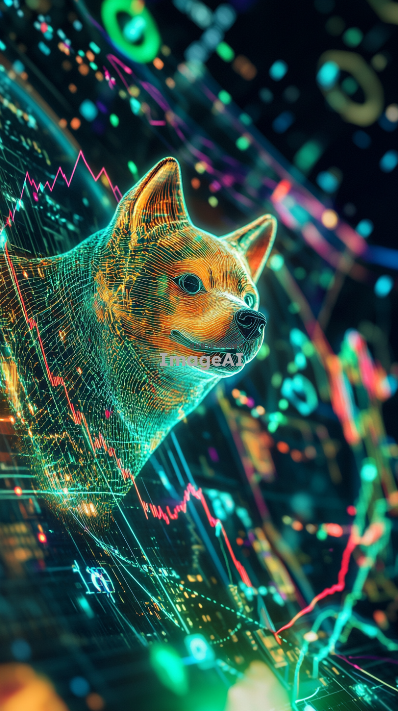 알트코인 차트가 배경으로 펼쳐진 금융 시장 속에서 도지코인이 유독 크게 부각되며 상승하는 모습. 도지코인은 밝고 활기찬 색상으로 강조되어 있으며, 다른 알트코인들은 상대적으로 작고 덜 눈에 띄게 표현됨. 차트는 디지털 스타일로, 도지코인의 상승 곡선이 명확하게 드러나는 장면. 금융 시장의 역동적인 분위기를 전달하는 이미지.