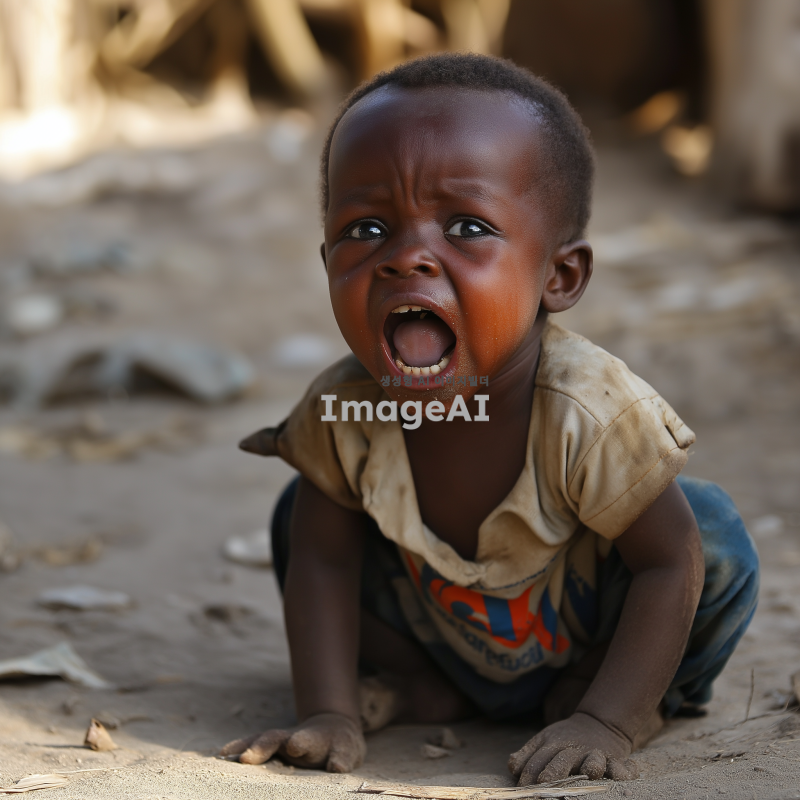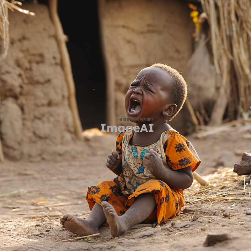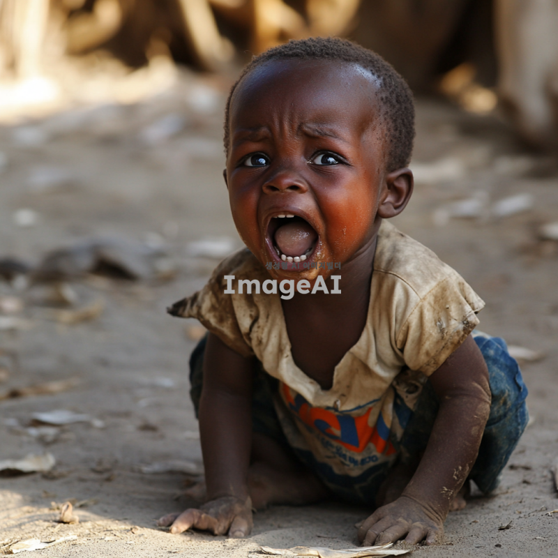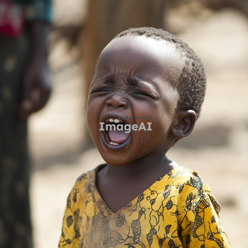 아프리카 한 마을에서 먹을게 없어서 울부짖고 있는 아이