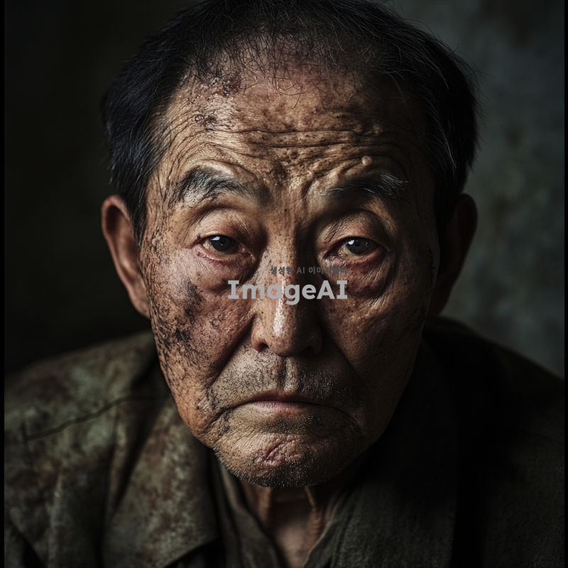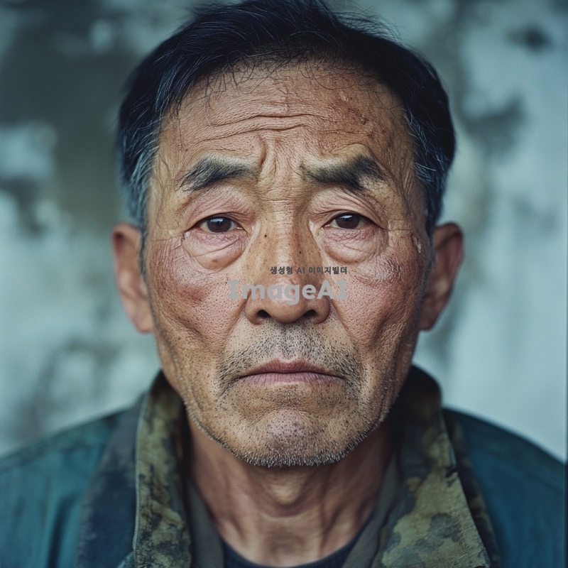 60세 한국인 남성 빅터 칼슨, 주름진 얼굴과 깊은 흉터가 특징인 요리사. 전쟁 중 강제 징집되어 작은 음식점을 떠나 전장에 나선 모습. 그의 눈에는 고된 삶의 흔적이 담겨 있고, 전쟁의 참혹함을 겪으며 생존을 위해 극한 상황에 처한 모습을 표현. 주변에는 전쟁의 잔해가 널려 있고, 칼슨은 그 속에서 생존을 위해 싸우는 모습을 강조. 한 특징의 인물을 그려줘