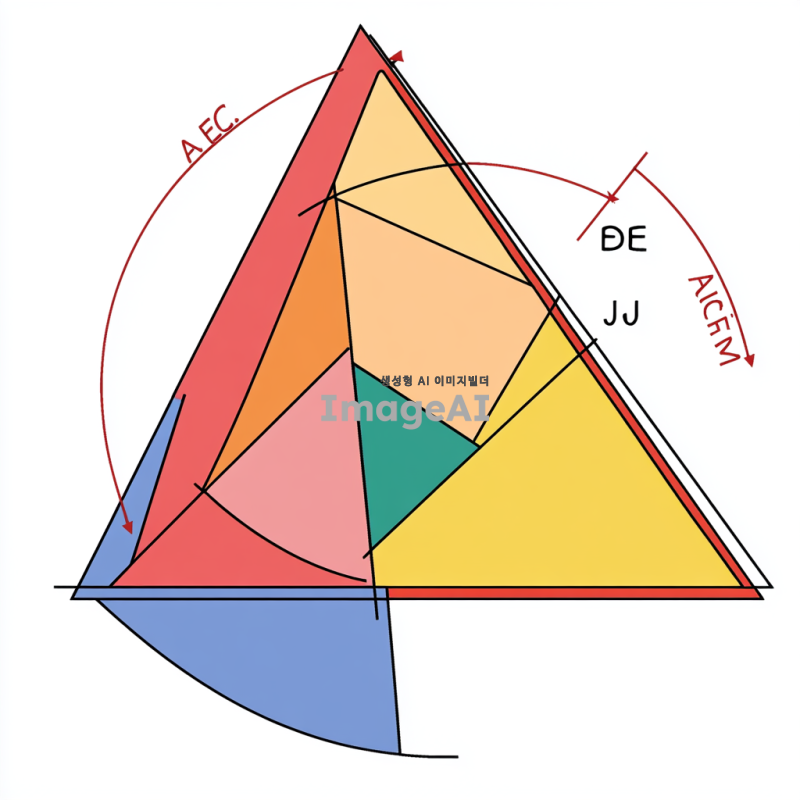 그림에서 정사각형 ABDE와 ACFG, BCHJ는 모두 정사각형이다. C를 지나는 AB의 수선은 정사각형 ABDE를 직사각형 AELM과 BDLM으로 나눈다. 삼각형의 넓이는 12밑변 높이이므로, 삼각형 ABG의 넓이는 정사각형 ACFG의 넓이의 절반이다. 마찬가지로, 삼각형 AEC의 넓이는 직사각형 AELM의 넓이의 절반이다. 삼각형 ABG를 A를 중심으로 시계 방향으로 90도 회전하면 삼각형 AEC를 얻을 수 있으므로, SAS에 따라 삼각형 ABG와 AEC는 합동이다. 합동인 삼각형의 넓이는 같으므로, 삼각형 ABG와 AEC의 넓이는 같다. 따라서, 정사각형 ACFG의 넓이는 직사각형 AELM의 넓이와 같다. 마찬가지로, 정사각형 BCHJ의 넓이는 직사각형 BDLM의 넓이와 같다. 따라서, 정사각형 ACFG와 BCHJ의 넓이의 합은 정사각형 ABDE의 넓이와 같다.