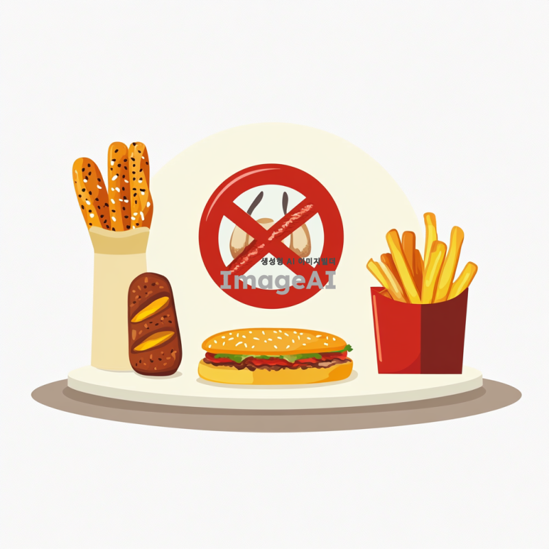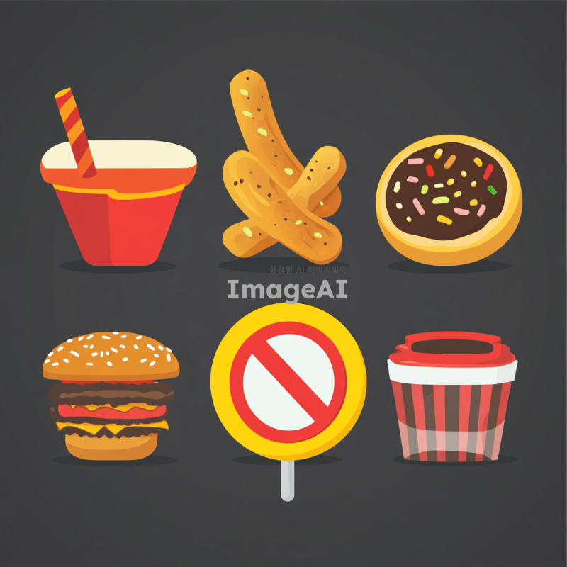 나쁜 음식들위에 금지 표시가 있음