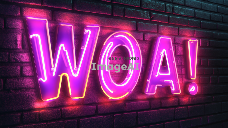 WOW! Damoa AI !! 글귀를 네온사인 스타일로 표현, 어두운 배경 위에 밝고 생동감 있는 네온 컬러 사용, 글자 주변에 은은한 빛 번짐 효과 추가, 현대적이고 세련된 느낌, 도시의 밤을 연상케 하는 분위기, 글자 크기는 큼지막하게, 네온사인의 질감을 사실적으로 표현, 글씨체는 부드럽고 유려한 스타일.