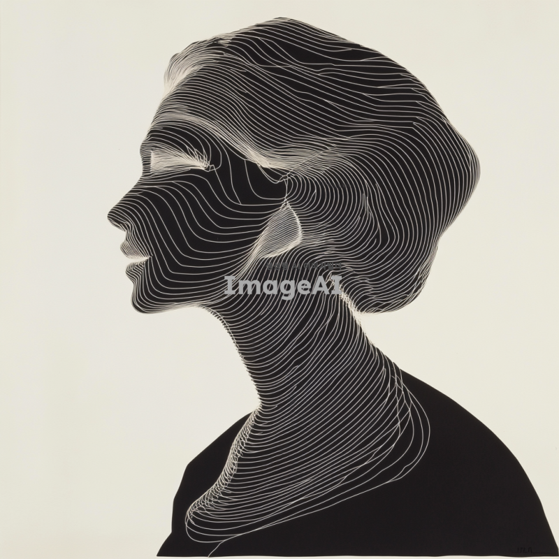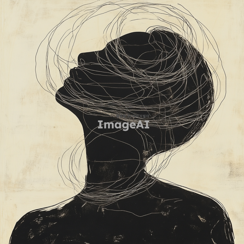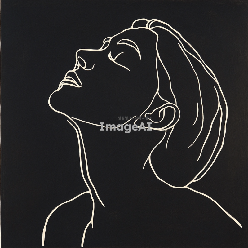 여자 실루엣, 가슴위로 보여지고 머리 위에도 공간이 있음, 선위주로 보여줘