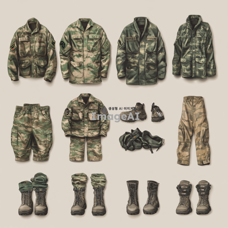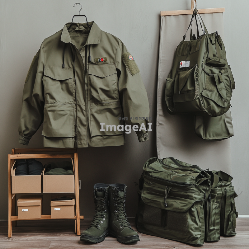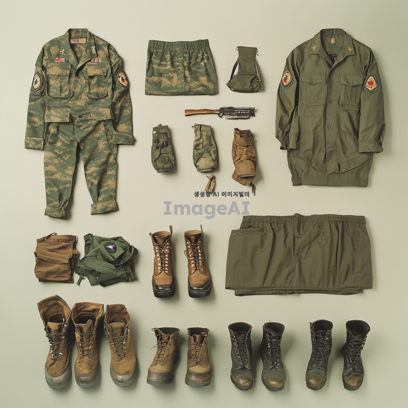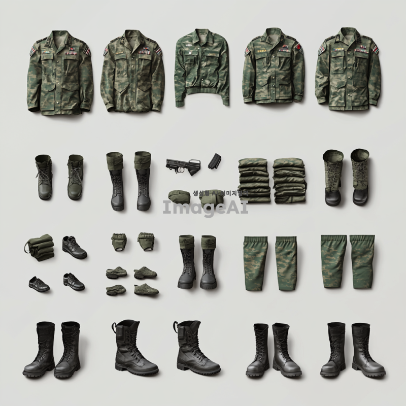 군 간부를 위한 군복, 군화 세탁 서비스 이미지를 만들건데, 구체적으로는 대한민국 군복과 군화를 세탁서비스업체에서 수거하는 모습을 이미지로 만들어줘