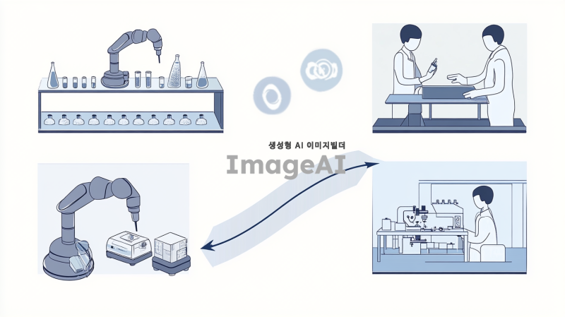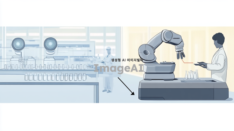 1. 위 보편적인 실험실의 1~3단계를 하나의 그림에서 로봇팔 등이 처리하는 모습을