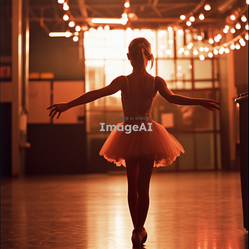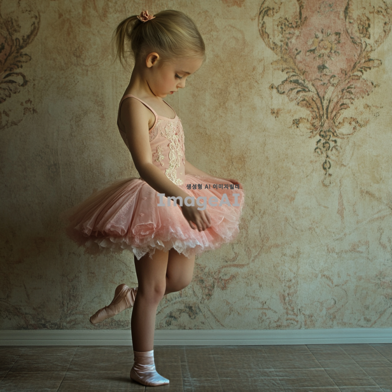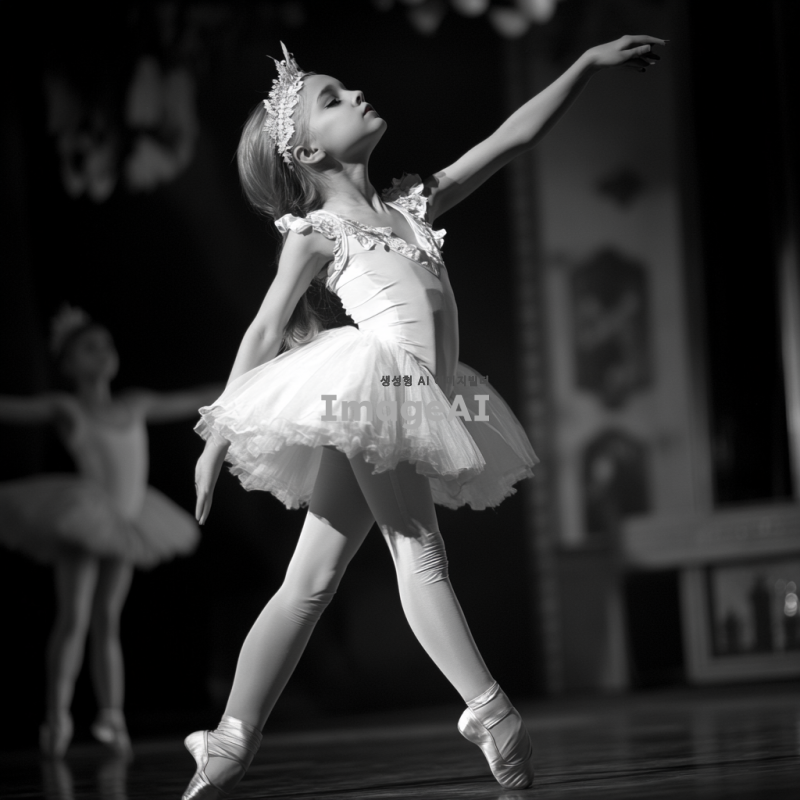 소녀가 힘듦에도 발레를 끝마치는 의무적인 모습을 그려줘