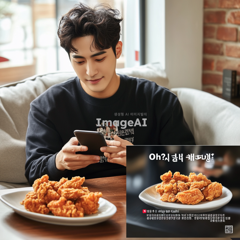 2. 한국 잘생긴 모델이 치킨을 주문하려는 상황