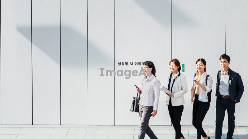 사람들이 오른쪽에 배치되어 있고, 이미지의 검은색 배경 대신 밝은색 깔끔한 무채색 배경으로 변경되어야 함