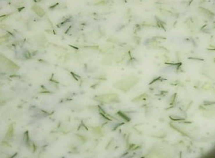 - 흰색 배경에 사워크림과 딜이 있는 짜지키, 사워크림과 오이 드레싱 또는 액체 오이 소스로도 알려져 있는 짜지키의 클로즈업. 텍스처는 크림 같고 연한 녹색이며, 소스 안에 작은 오이 조각이 보입니다. 전통적인 그리스 소스로 달콤하면서도 꽃향기가 나는 특징이 있습니다. 각도는 크리미하고 톡 쏘는 텍스처와 식물 요소의 상쾌한 조화를 전체적으로 보여줍니다.