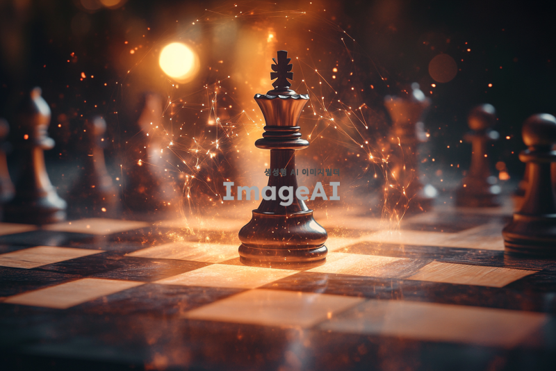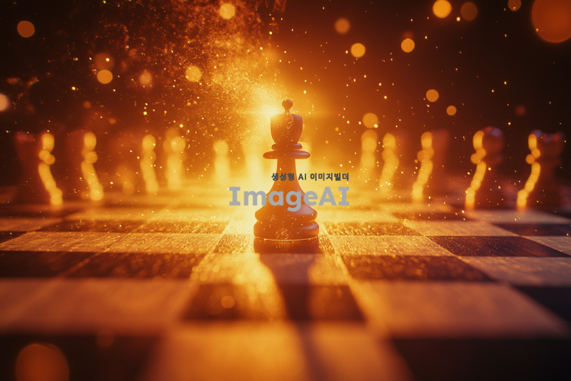 체스판 위에 위치한 폰이 체스판의 끝에 도달한 장면, 폰은 승리의 순간을 상징하며 빛나는 오라에 둘러싸여 있음. 체스판은 고급스러운 나무 재질로, 주변에는 다른 체스 말들이 정렬되어 있으며, 배경은 약간 흐릿하게 처리되어 폰에 집중되도록 연출됨. 조명은 부드럽고 따뜻한 색조로 폰을 강조하며, 전체적인 분위기는 전략적이고 지적인 느낌을 줌.